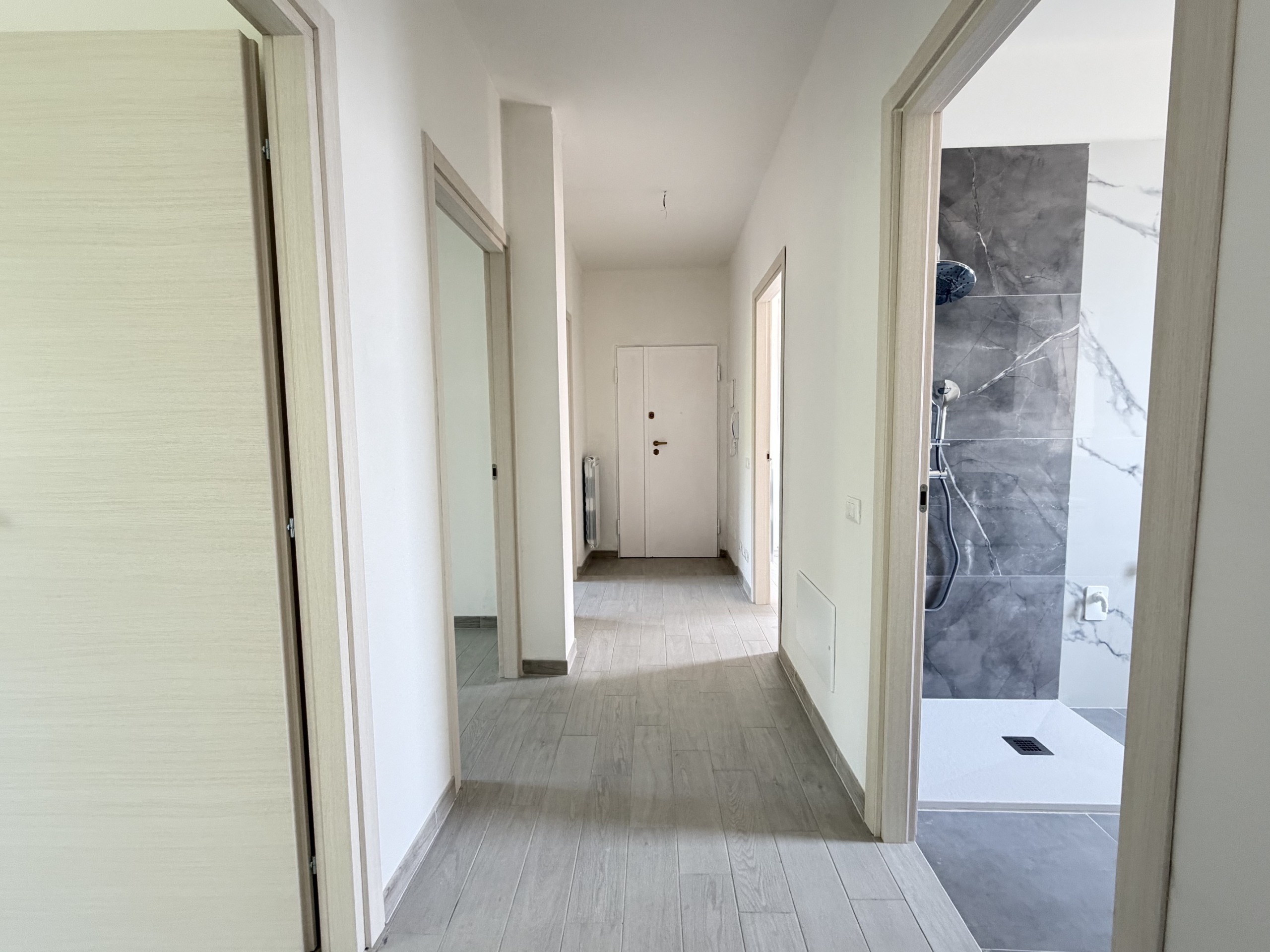 Internamente l'immobile si compone da ingresso, soggiorno con terrazzo, cucina separata abitale con terrazzino, camera da letto matrimoniale, camera da letto doppia, camera da letto singola e bagno.