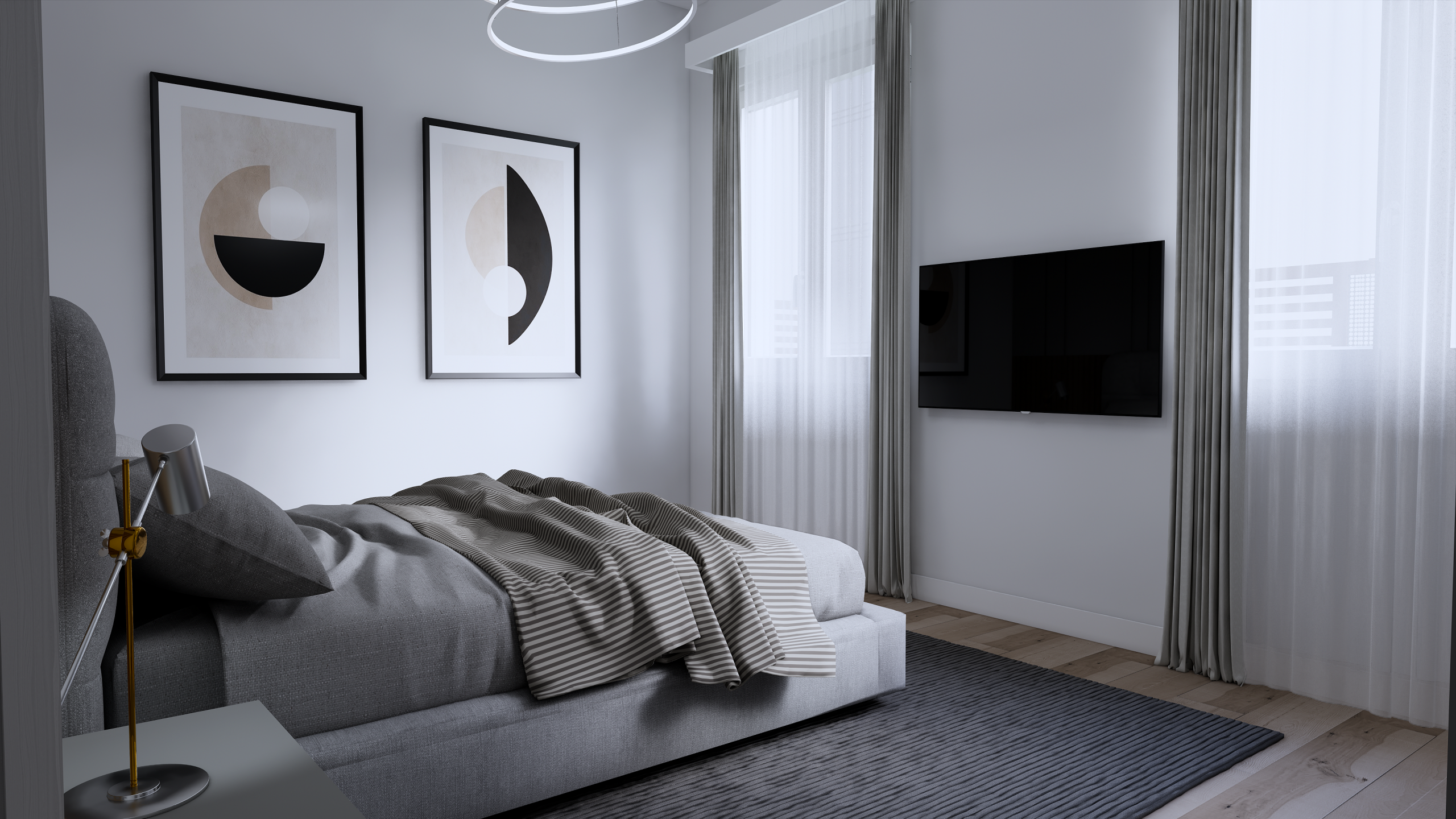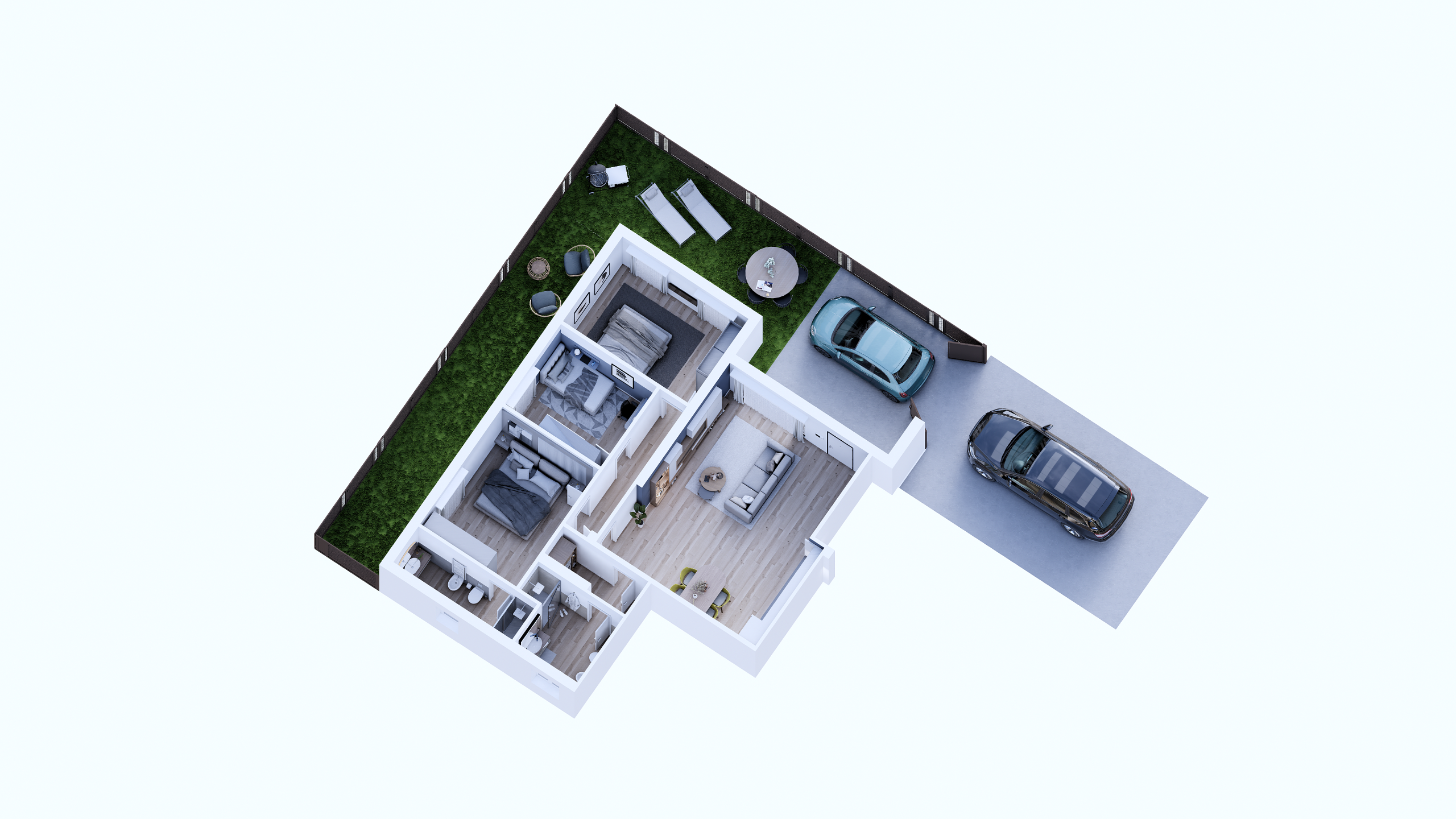 Entrando si accede all'ampia zona giorno in open space di circa 40 mq, attraverso cui si accede alla zona notte composta da una camera matrimoniale, una camera doppia e una camera singola, oltre a due bagni completi.