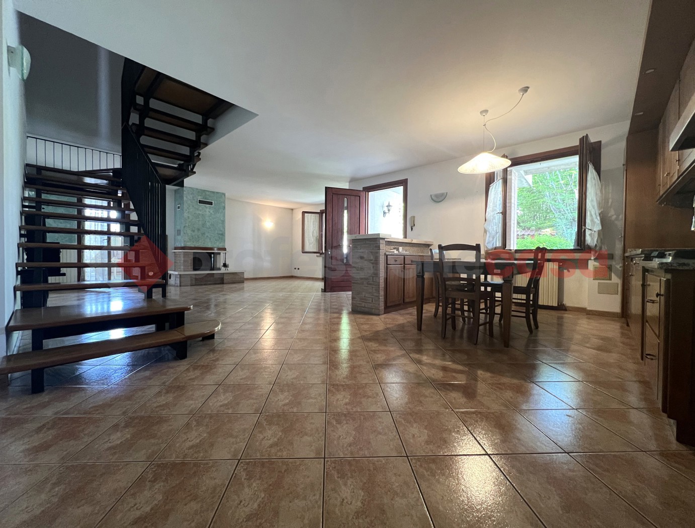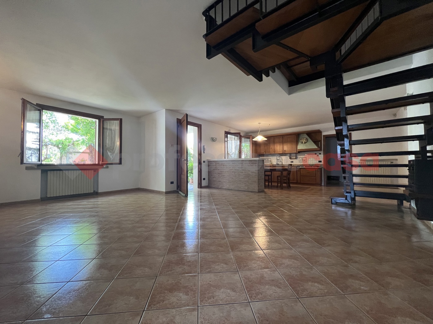 Al piano terra luminosa zona living con soggiorno e cucina in open space, un ambiente accogliente e conviviale.