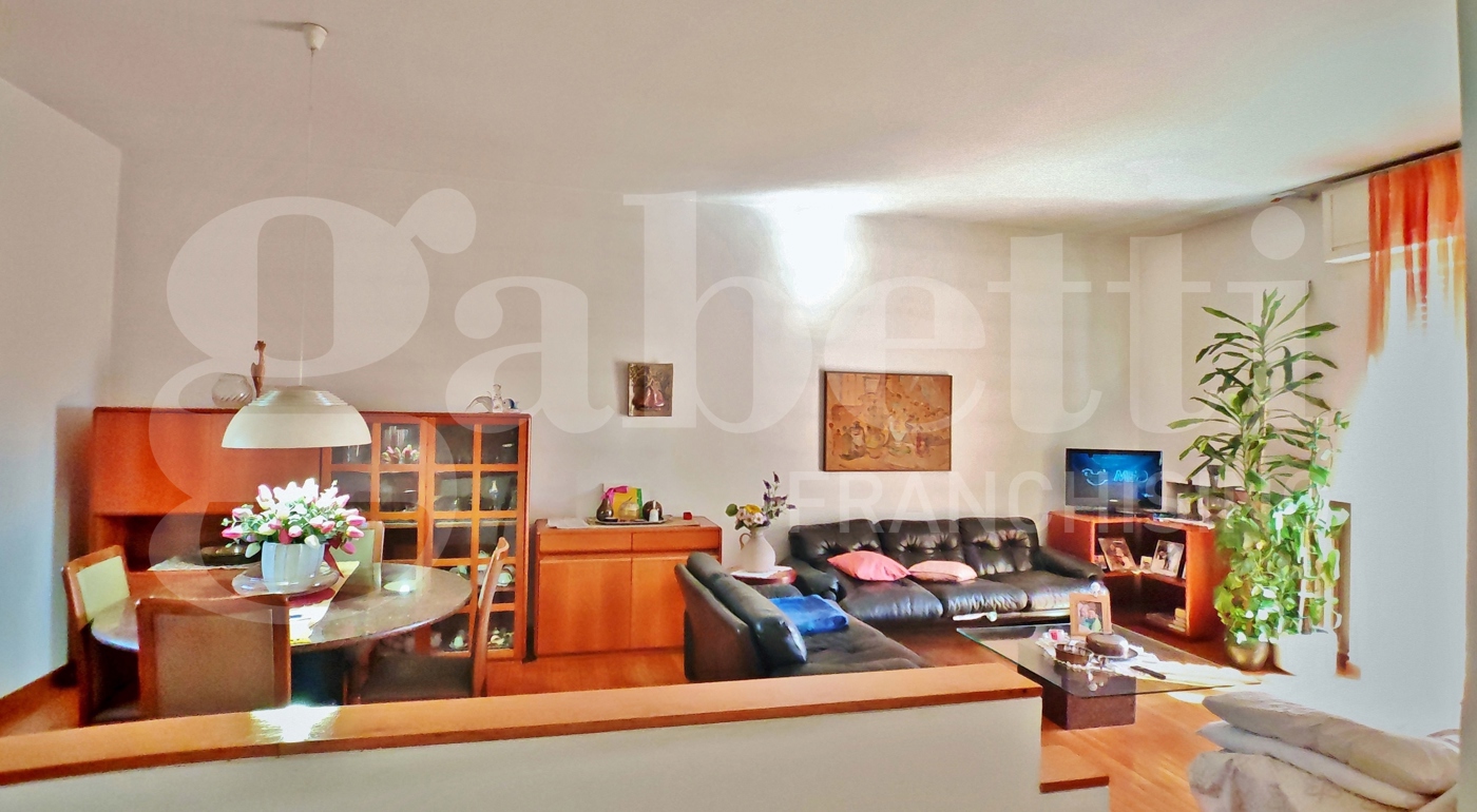 Lappartamento, di circa 112 mq, si sviluppa al primo piano con ingresso al piano terra e presenta ambienti ampi e ben distribuiti: la zona giorno composta da un luminoso soggiorno di circa 40 mq con accesso al balcone, collegato alla cucina abitabile.