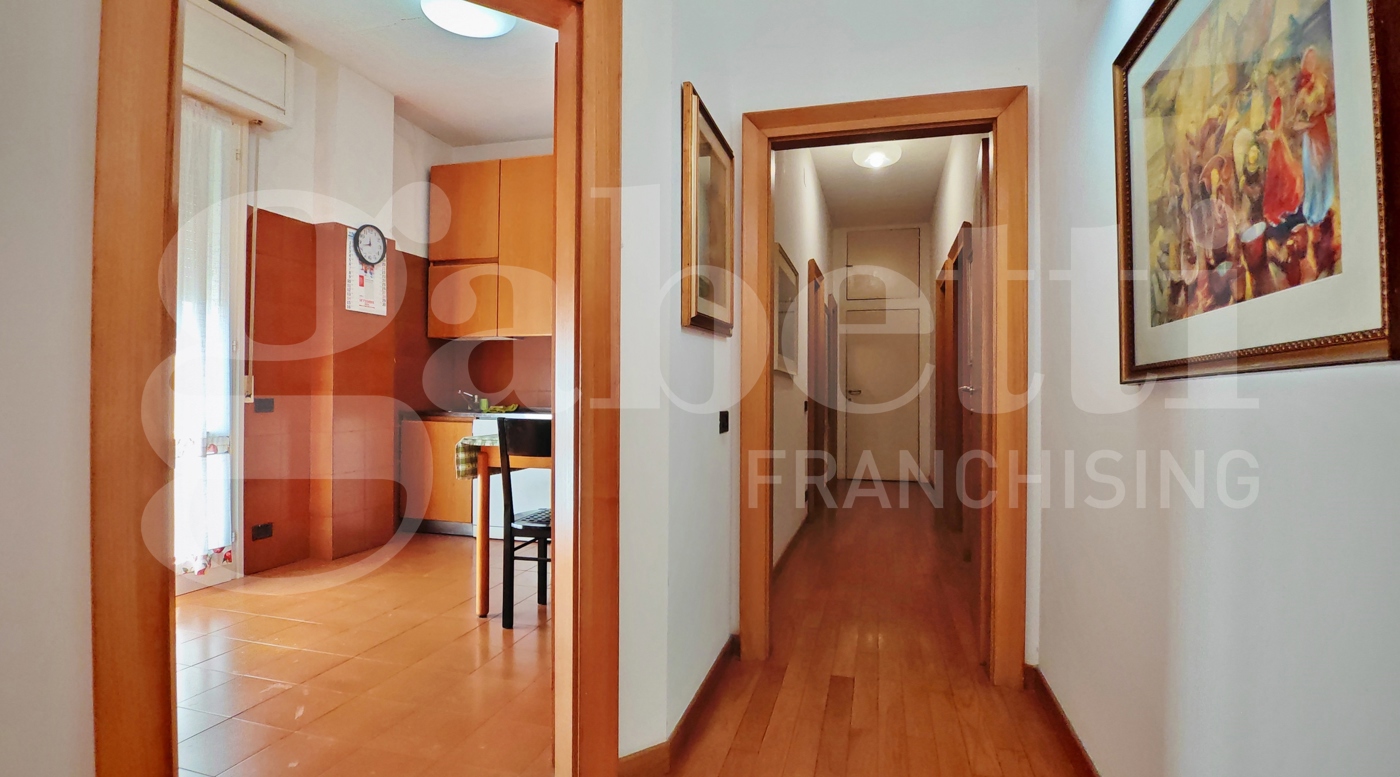 Un funzionale disimpegno conduce alla zona notte, dove troviamo due spaziose camere matrimoniali e doppi servizi.