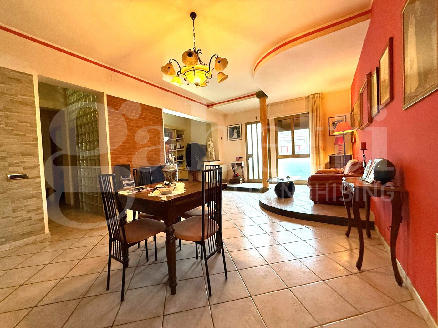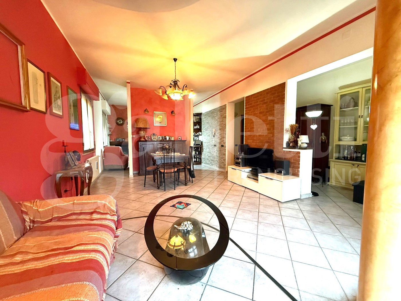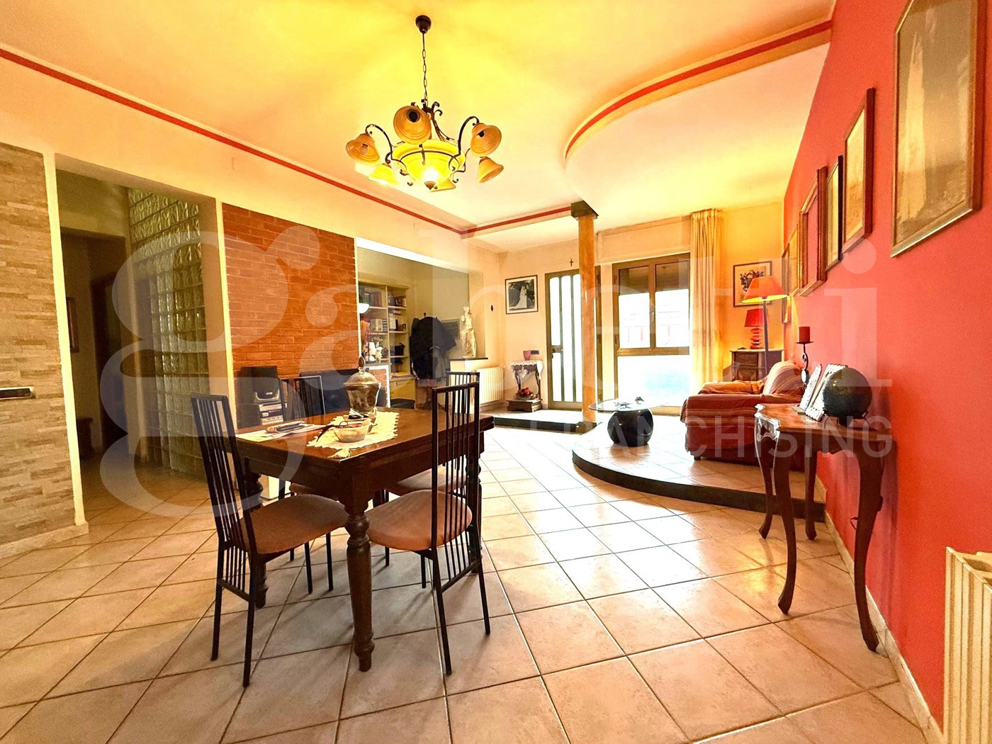 L'appartamento libero su quattro lati con resede, giardino e posto auto. L' accesso , con ingresso indipendente avviene nel soggiorno ampio e luminoso dove una piccola parete ci separa dalla cucina abitabile con camino.