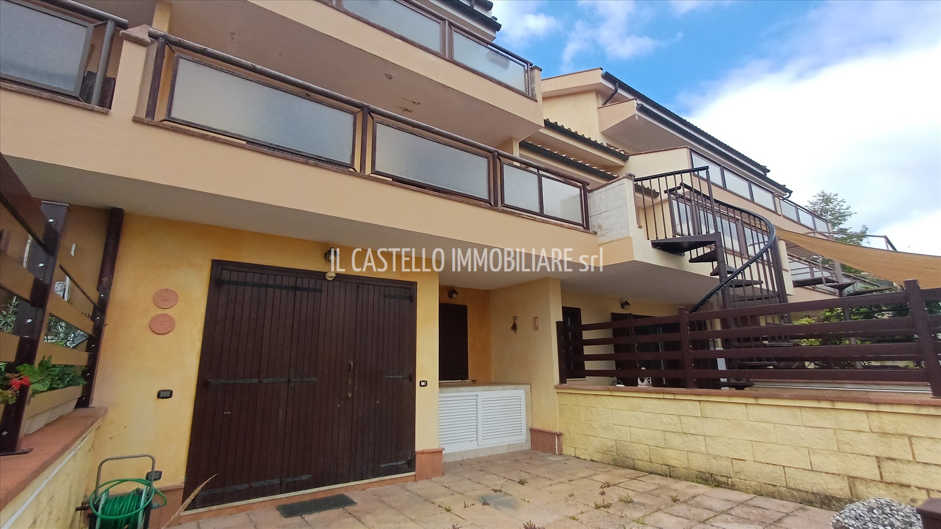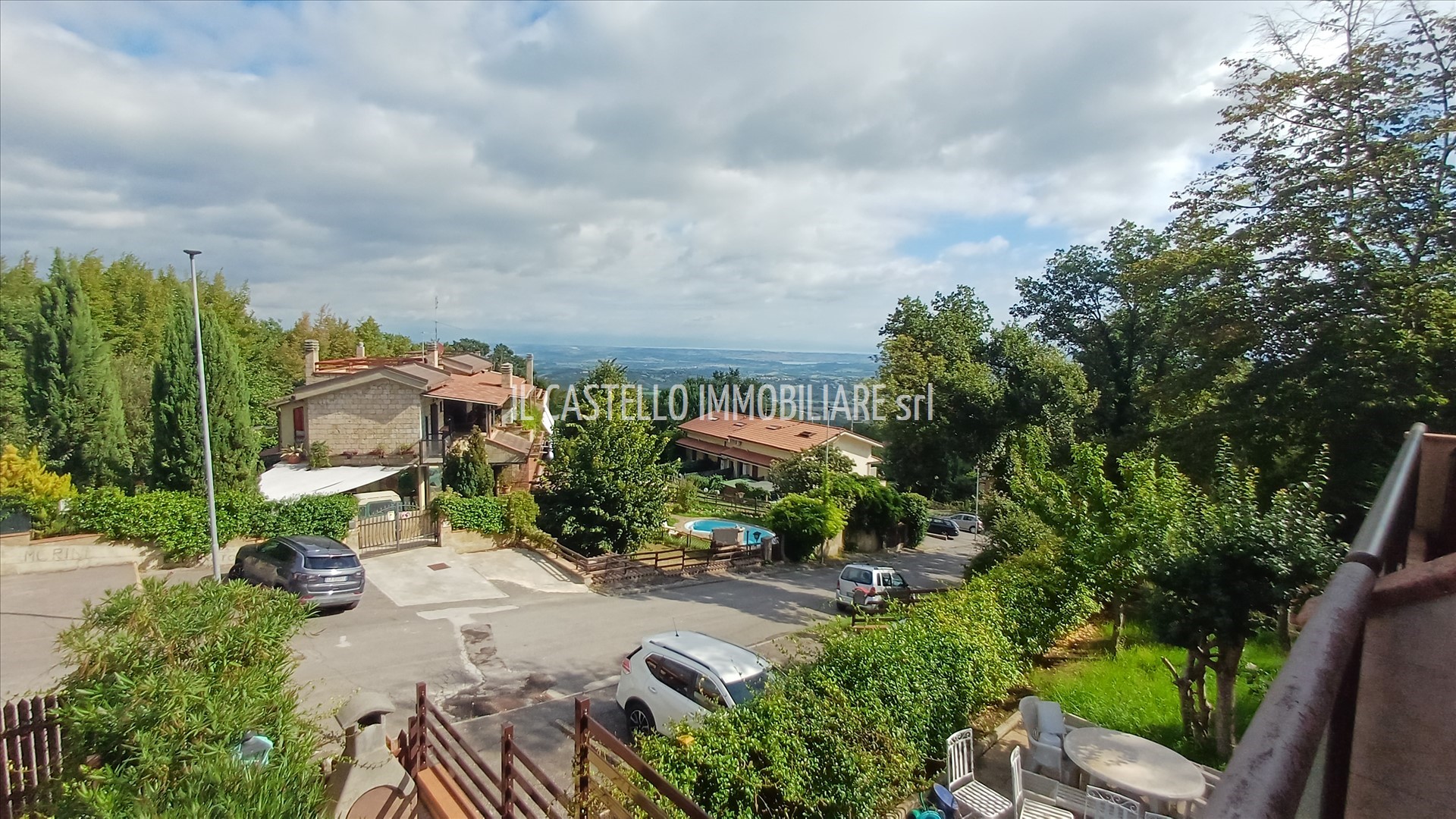 Esposizione a nord. Ottimo per ogni necessità, dalla casa di residenza alla casa vacanza, vista anche la disponibilità di una piscina d'uso privato degli abitanti del complesso (poche unità). La superficie catastale complessiva commerciale dell'immobile è di circa mq 99 (in considerazione dell'appartamento di circa mq 94 su due livelli e parcheggio privato di mq 18 oltre all'incidenza delle parti esterne). L'appartamento dispone al piano terra di resede esclusivo con passo carrabile (di circa mq 77) parte pavimentato e attrezzato per cene all'aperto incluso barbecue; internamente dispone di ingresso/soggiorno con cucinotto, sala da pranzo rialzata (con scala per l'accesso al piano superiore), disimpegno e bagno; al piano primo dispone di ampia camera da letto con terrazza panoramica (circa 18 mq) bagno doccia e antibagno.