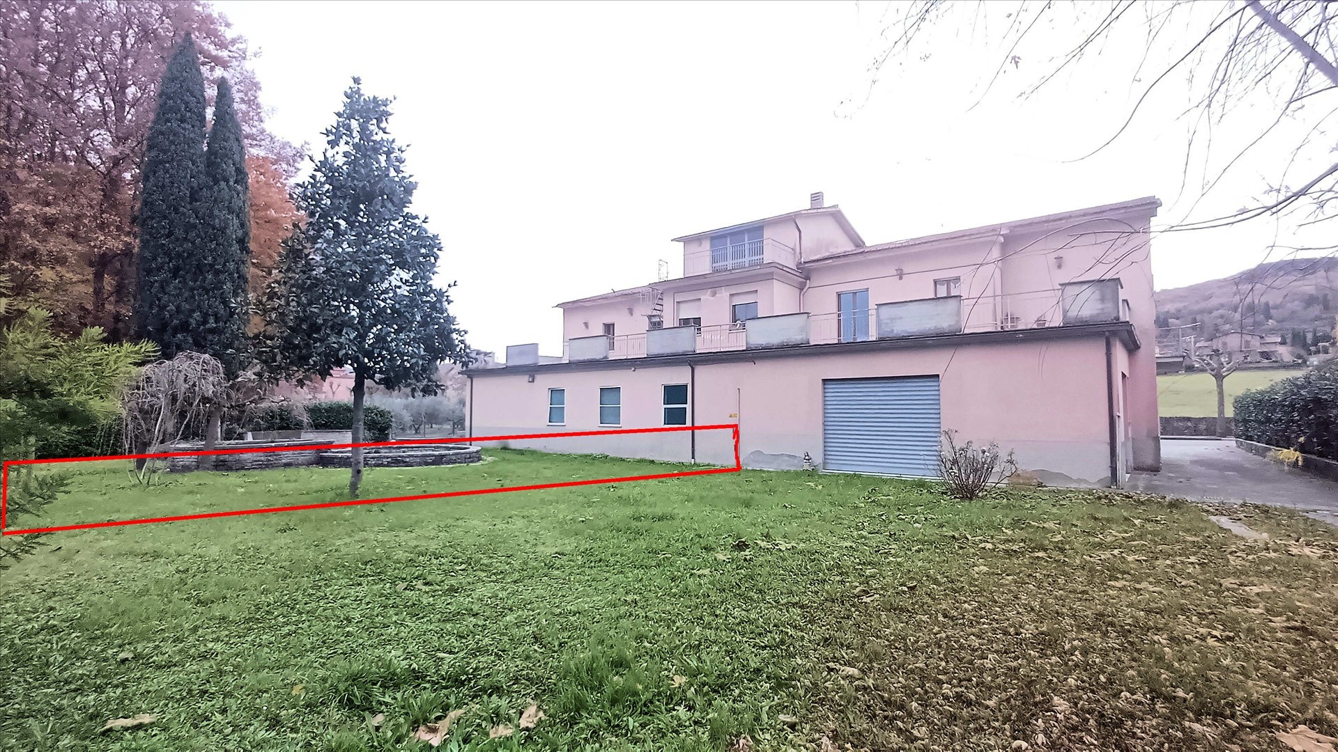 Dispone inoltre di ampio piazzale pavimentato sul fronte, comune con l'altra unità. È presente un piccolo annesso all'interno del giardino per rimessa attrezzi.