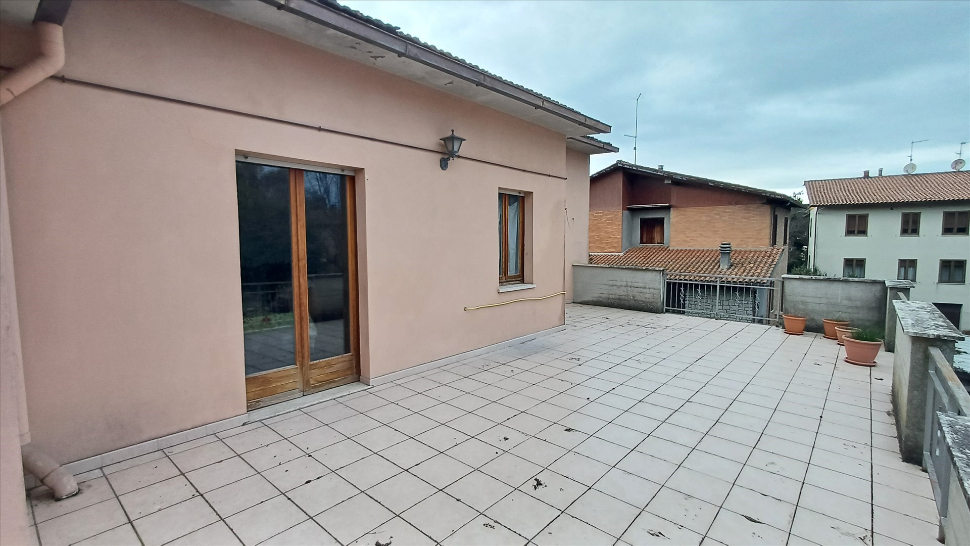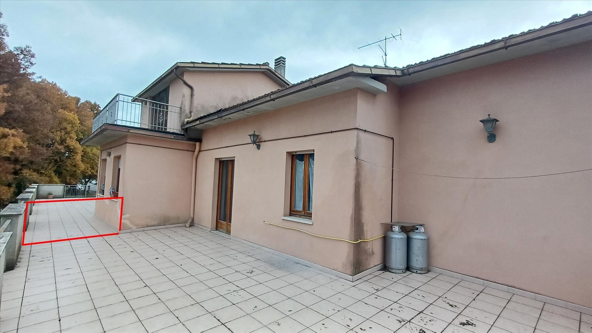 Al piano primo, con accesso da scala esterna comune, dispone di un appartamento (sul lato nord/ovest, a sinistra guadando il fabbricato dal fronte) con ingresso, cucina/pranzo con grande terrazza, soggiorno, disimpegno, 2 camere di cui una con balcone, bagno.
