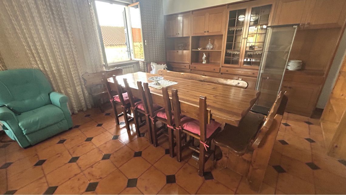 Lingresso conduce a un corridoio che distribuisce gli ambienti: cucina abitabile e, sul fondo, un ampio doppio salone con camino e zona soggiorno, perfetto per momenti conviviali con amici e familiari.