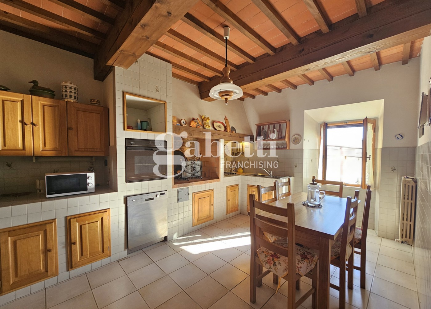 L'immobile conserva il fascino tipico delle dimore storiche con travi a vista, pavimenti in cotto e parquet e scala in legno massello, presentandosi in buone condizioni generali.