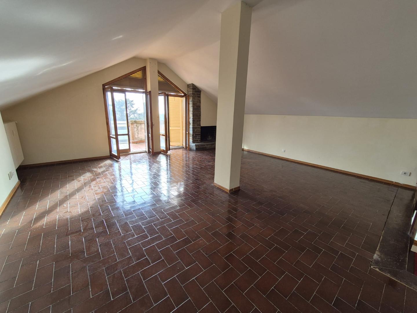 L'immobile distribuito su due piani è così composto: ingresso, ripostiglio, cucina con dispensa e terrazzo, soggiorno con terrazza in loggia, corridoio, due camere, studio e bagno, al piano superiore un ampio vano unico con terrazzo (lastrico solare), un w.c. e una camera con terrazzo (lastrico solare). Al piano seminterrato una grande autorimessa esclusiva di 40 mq accessibile con porta basculante.