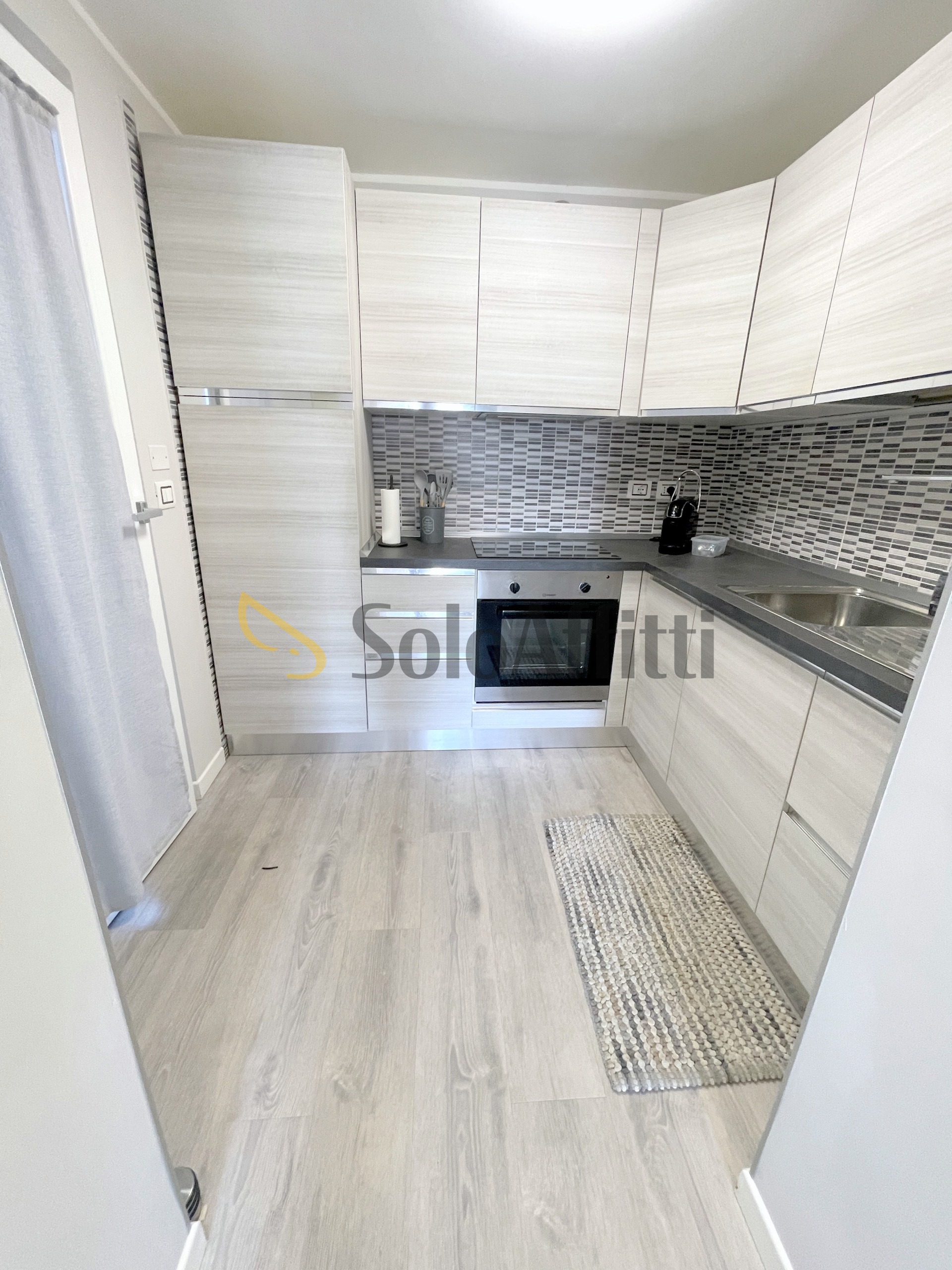 Cucina e Spazi Esterni : Il cucinino, completo e funzionale, offre un accesso diretto al secondo giardino esclusivo.