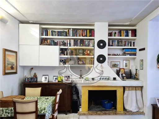si accede all'abitazione da una terrazza, entrando troviamo il soggiorno con camino, una cucina, un disimpegno conduce alla zona notte dove si trovano due bagni di cui uno con finestra, una camera singola ampia ed una camera matrimoniale.