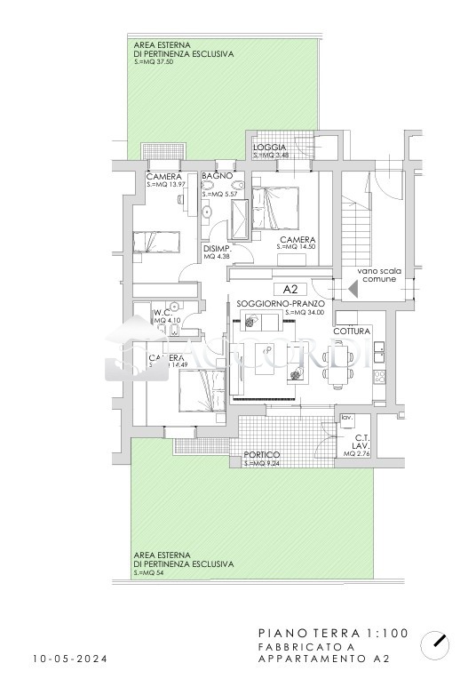 Completano l'appartamento una loggia coperta, un comodo disimpegno che ottimizza gli spazi e un locale tecnico-lavanderia, elementi che valorizzano l'organizzazione domestica e aggiungono praticità alla vita di tutti i giorni.