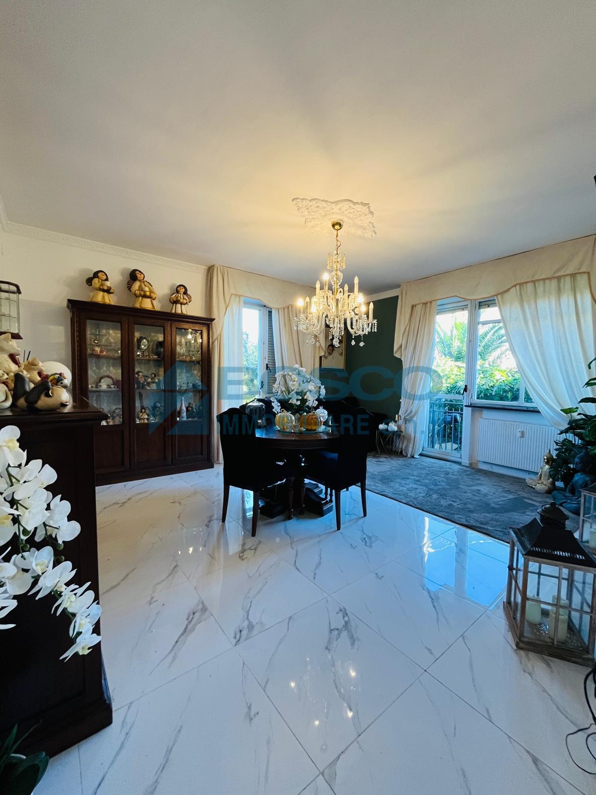 SANTO STEFANO DI MAGRA Appartamento con ampio giardino privato In zona residenziale tranquilla e ben servita, a pochi metri dal raccordo autostradale e comodo per raggiungere La Spezia (9 km) e il mare (10 km), proponiamo appartamento di 120 mq al piano rialzato di uno stabile moderno e curato.