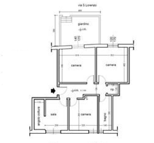 Appartamento posto al piano terra composto da: un corridoio d'ingresso da cui si può accedere alla sala con angolo cottura situata sulla destra e su altre 3 camere, al bagno, ed in fondo, ad un piccolo ripostiglio.