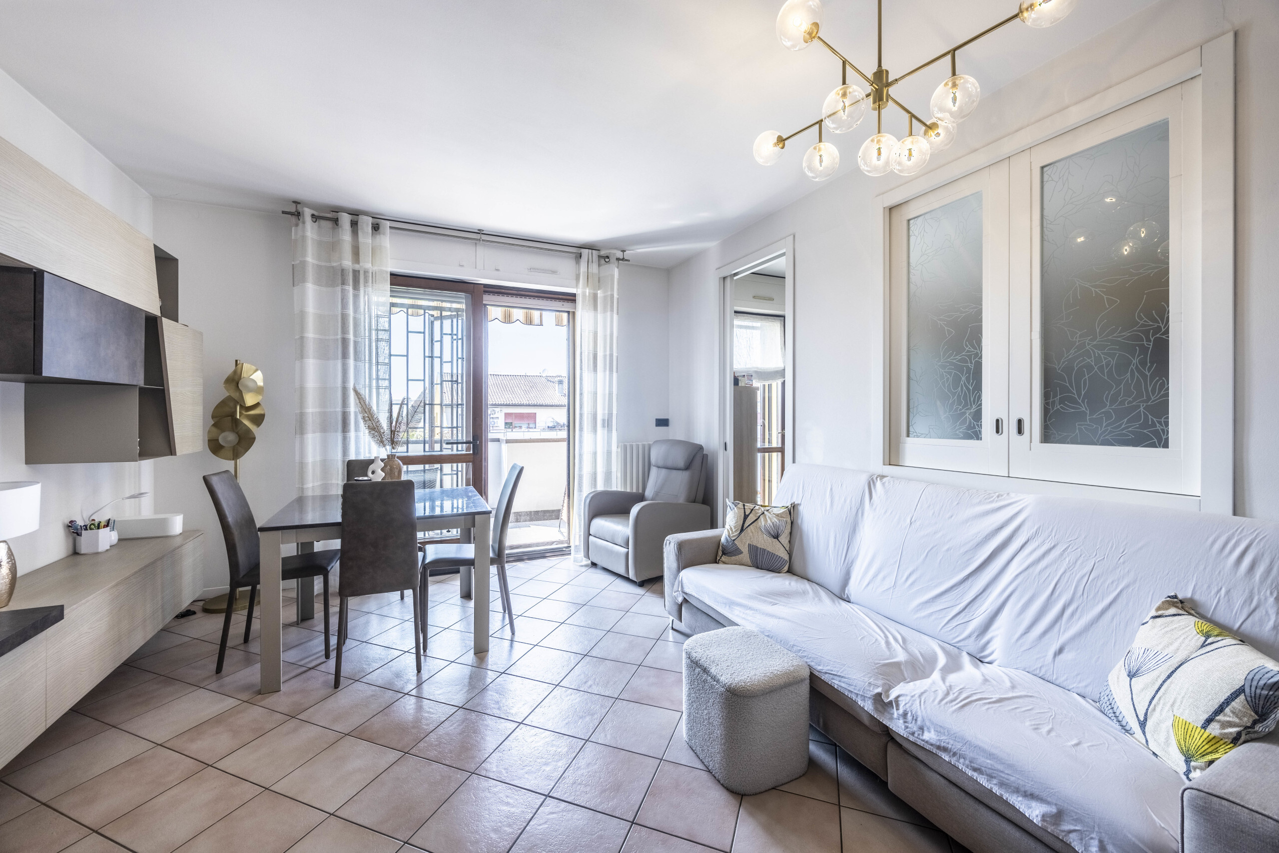 Sala con cucina "in affaccio" e loggia panoramica mq 10, due camere da letto, di cui la più ampia con ulteriore loggia e due bagni.