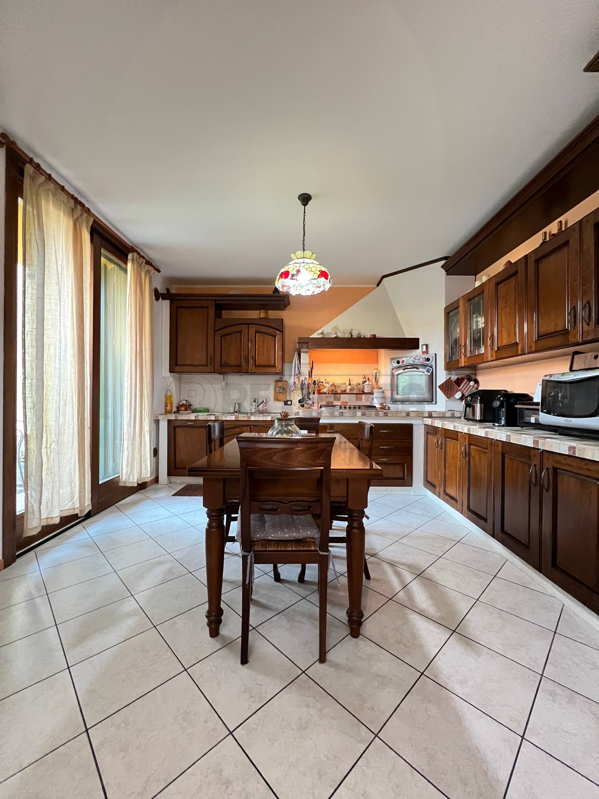 Allinterno si è accolti da un ampio e luminoso soggiorno, collegato a una cucina abitabile valorizzata da un grande finestrone con affaccio diretto sul giardino.