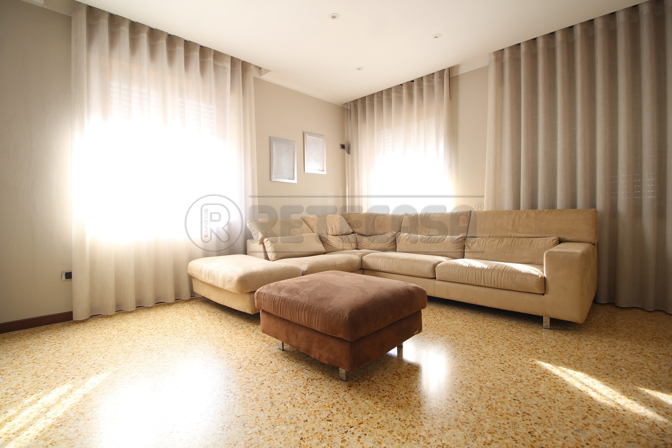 La zona giorno misura oltre 50 metri quadri e si compone di due grandi locali: subito a destra il salotto e la cucina che offre spazi generosi e ben distribuiti.