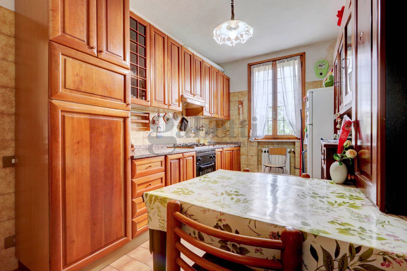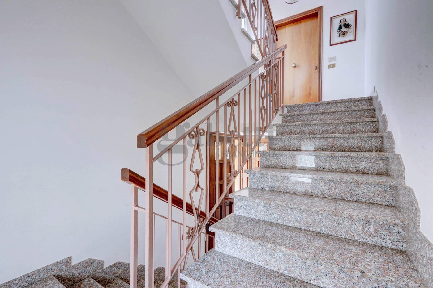 Appartamento nr. 2: accesso da vano scala, piano primo composto da soggiorno con camino, balcone, cucina abitabile, grande disimpegno notte, 2 camere matrimoniali, balcone e bagno con vasca e doccia.