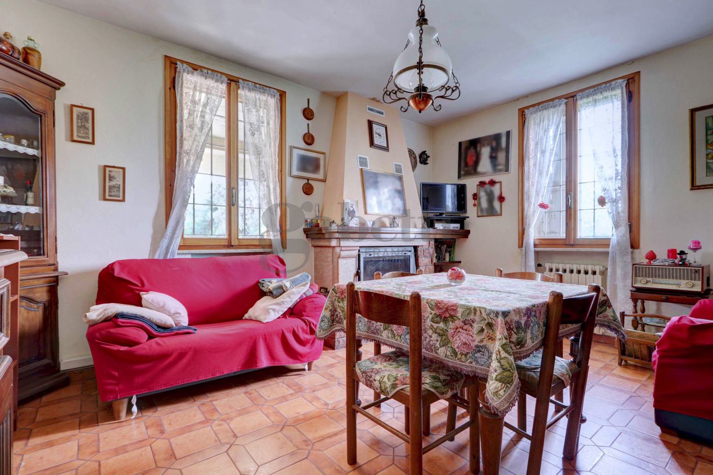Servizi per le unit abitative: grande porticato, lavanderia, 3 cantine (di cui una interrata), soffitta con altezze importanti (min. 275 cm), locale acetaia, 2 garage ed una tavernetta con camino, al piano terra.