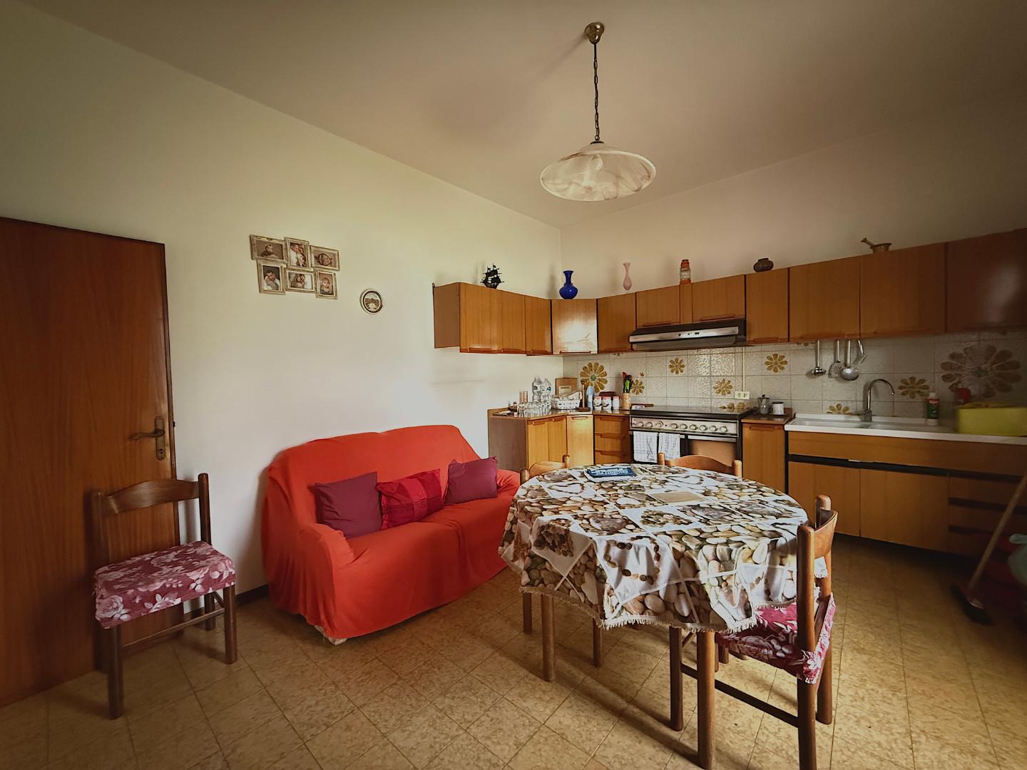 L'appartamento con accesso da piccolo giardinetto, è composto da ingresso, ampia cucina abitabile con terrazzo, soggiorno con terrazzo, disimpegno che conduce alle 3 camere matrimoniali una delle quali con terrazzo, bagno finestrato e scala di accesso diretto al garage di circa 20mq. Completa la proprietà un orto. L'appartamento si presenta in buono stato e potrebbe essere abitato da subito.