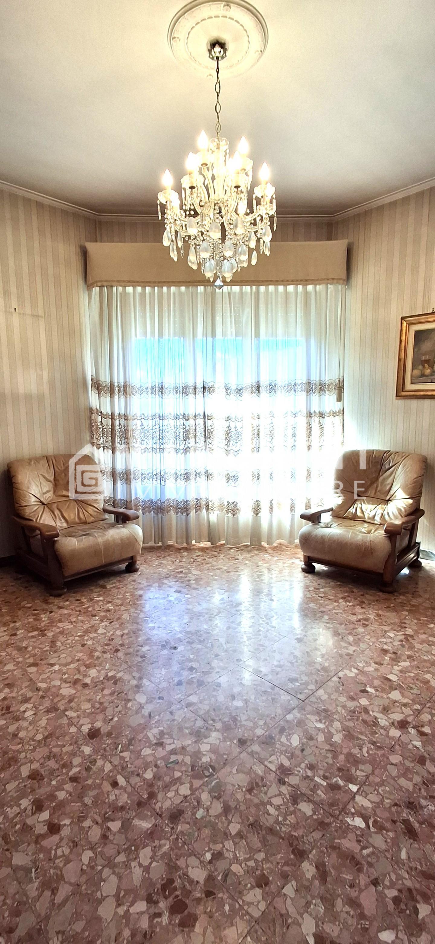 Nell' appartamento gli ambienti sono così disposti: mediante un vano ingresso spazioso e tradizionale, accediamo alla sala con terrazzo, al tinello e alla cucina abitabile, anch'essa con terrazzo.