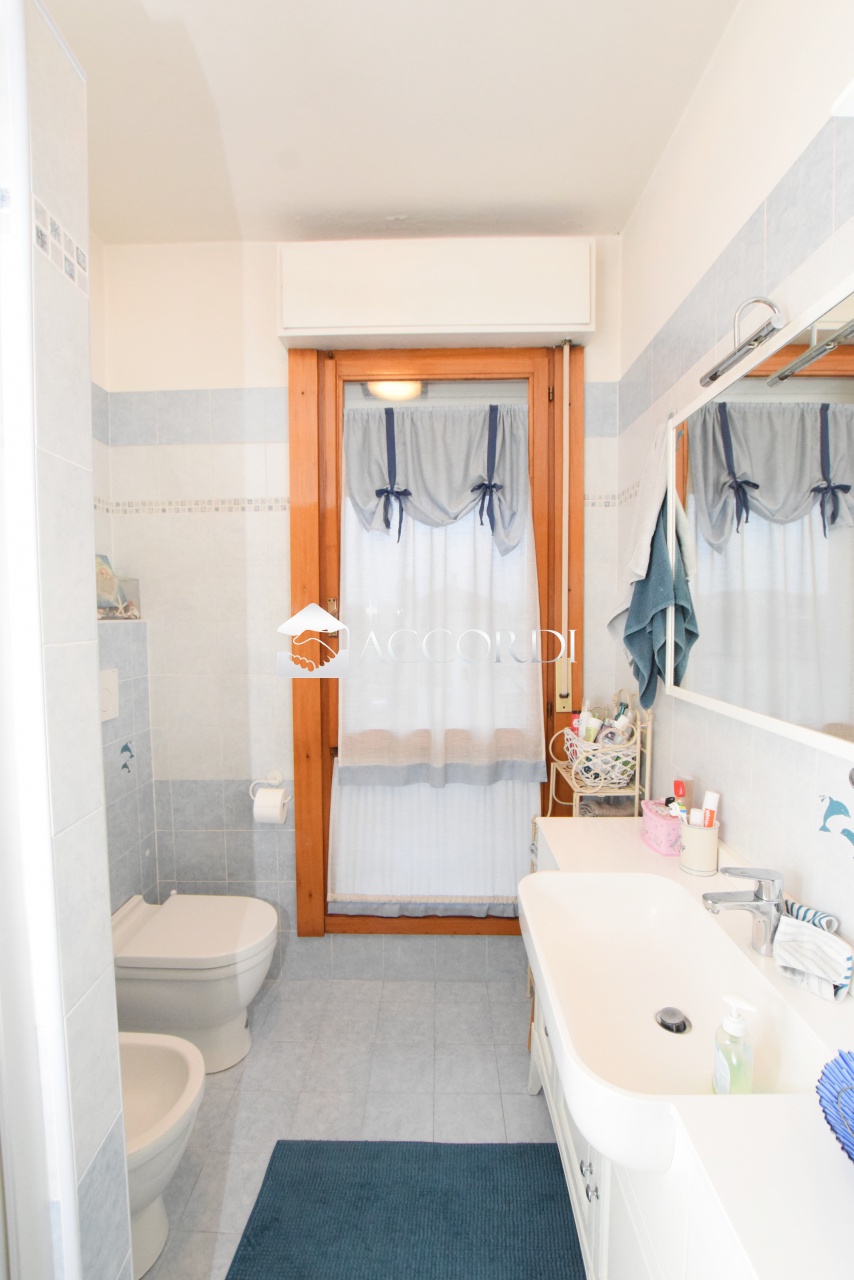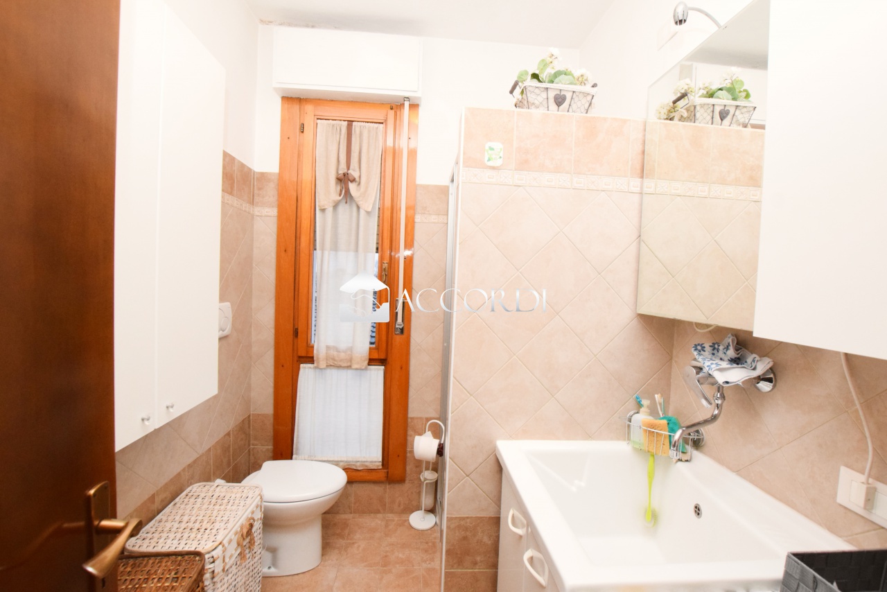 Sono presenti due bagni dotati di box doccia e attacco lavatrice, oltre ad un pratico ripostiglio.