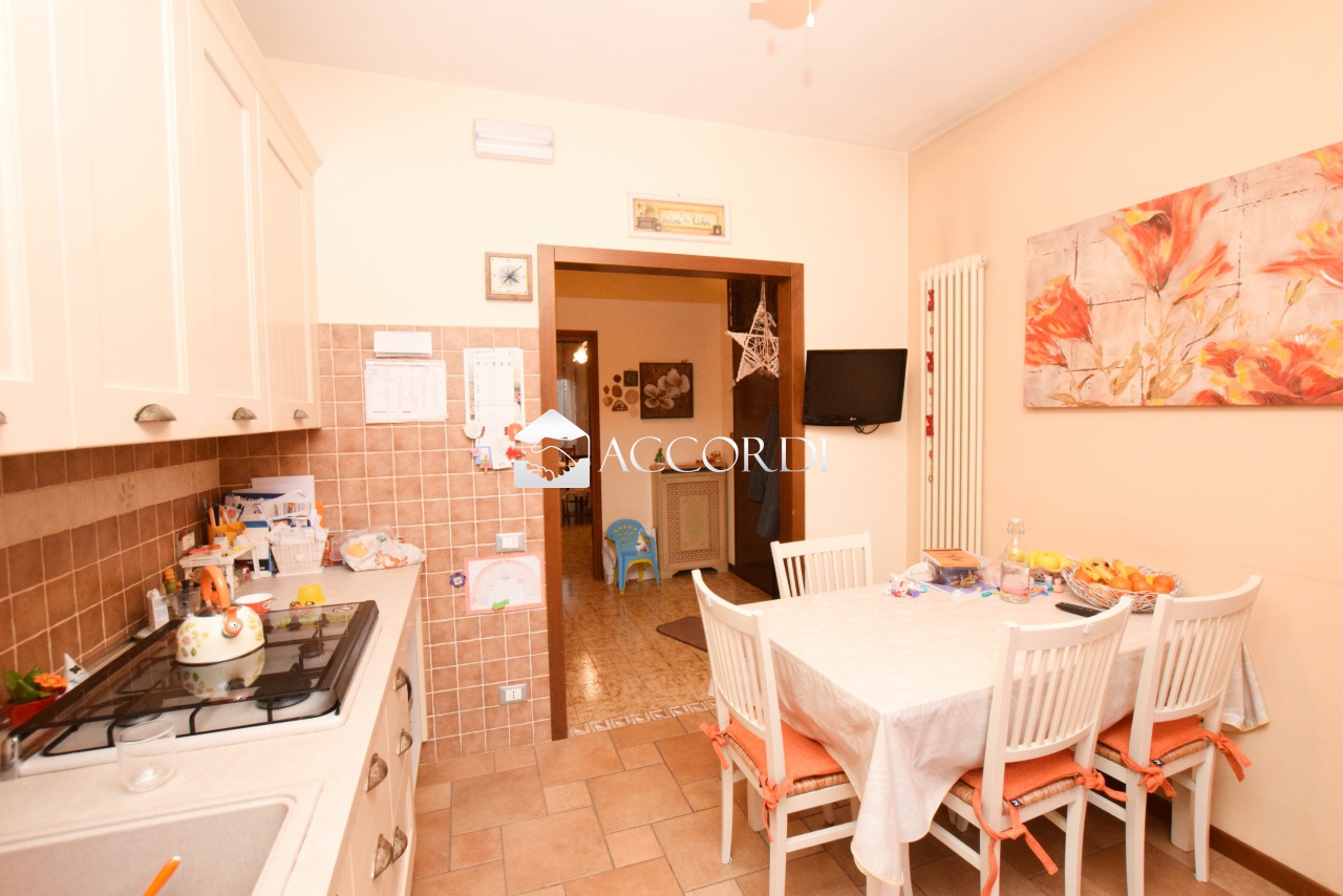 L'immobile si apre su un ingresso spazioso che conduce alla cucina abitabile, completamente rinnovata, e all'ampio soggiorno luminoso.