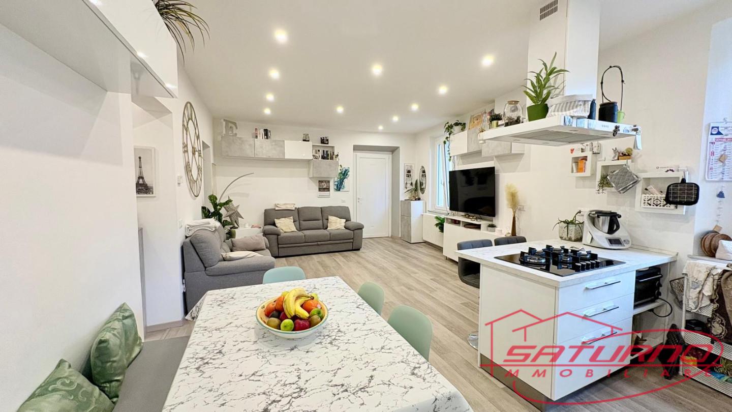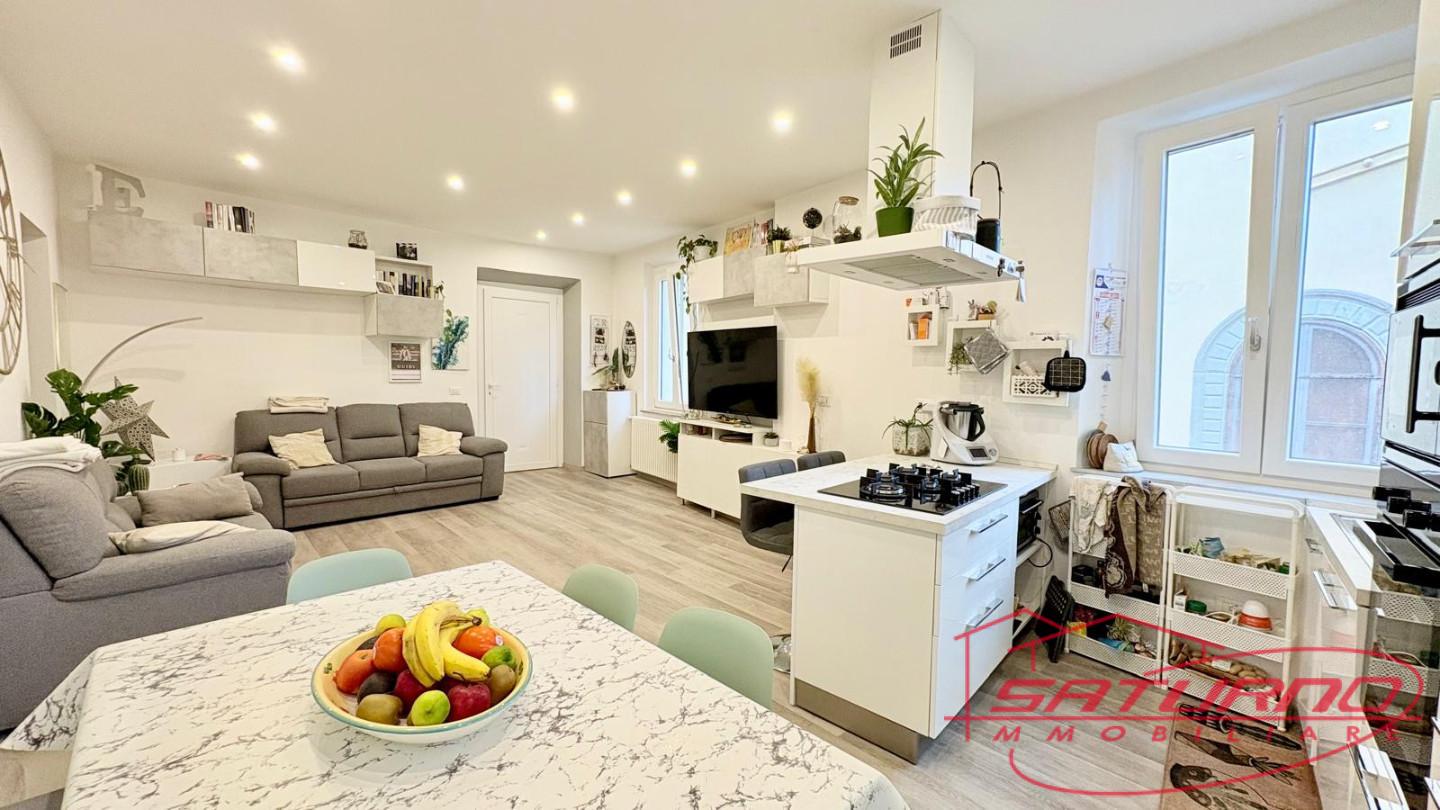 L'appartamento presenta un ingresso tradizionale e vanta un'esposizione a Nord, Ovest e Sud, garantendo luminosità e comfort.. L'abitazione si apre su ampio open space che unisce zona giorno e cucina creando un ambiente accogliente e moderno.