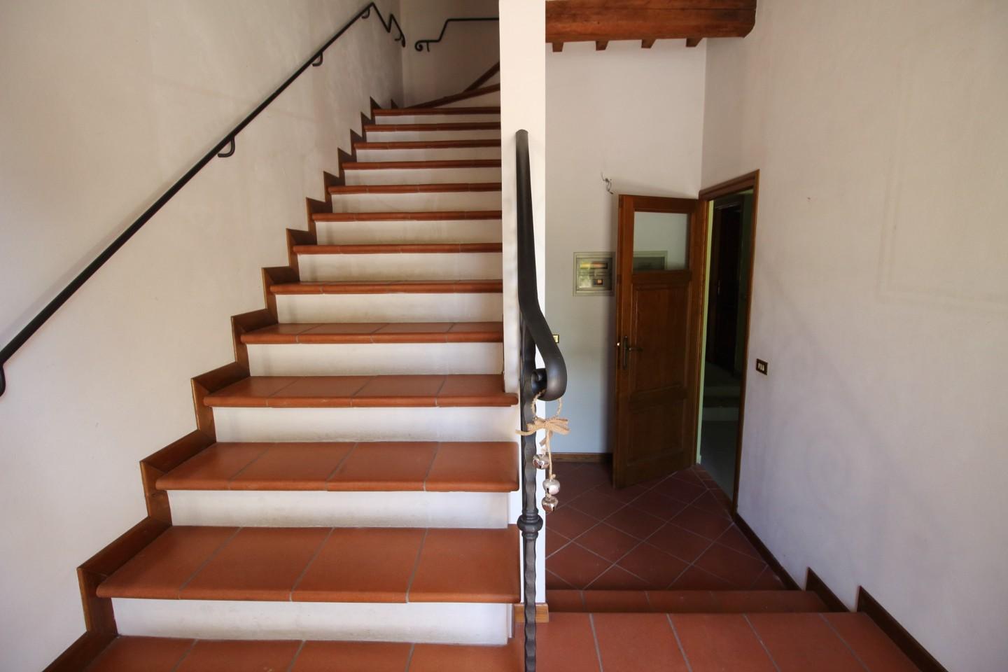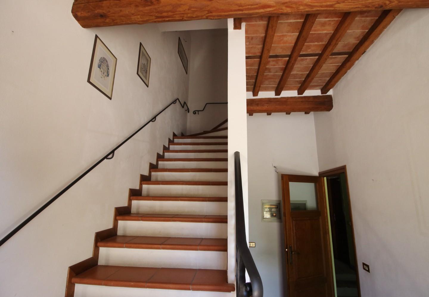 Al piano superiore, l'appartamento si apre su una spaziosa zona giorno con un caldo camino, una cucina abitabile con balcone panoramico, tre camere da letto luminose (due singolee una doppia) e un altro bagno.