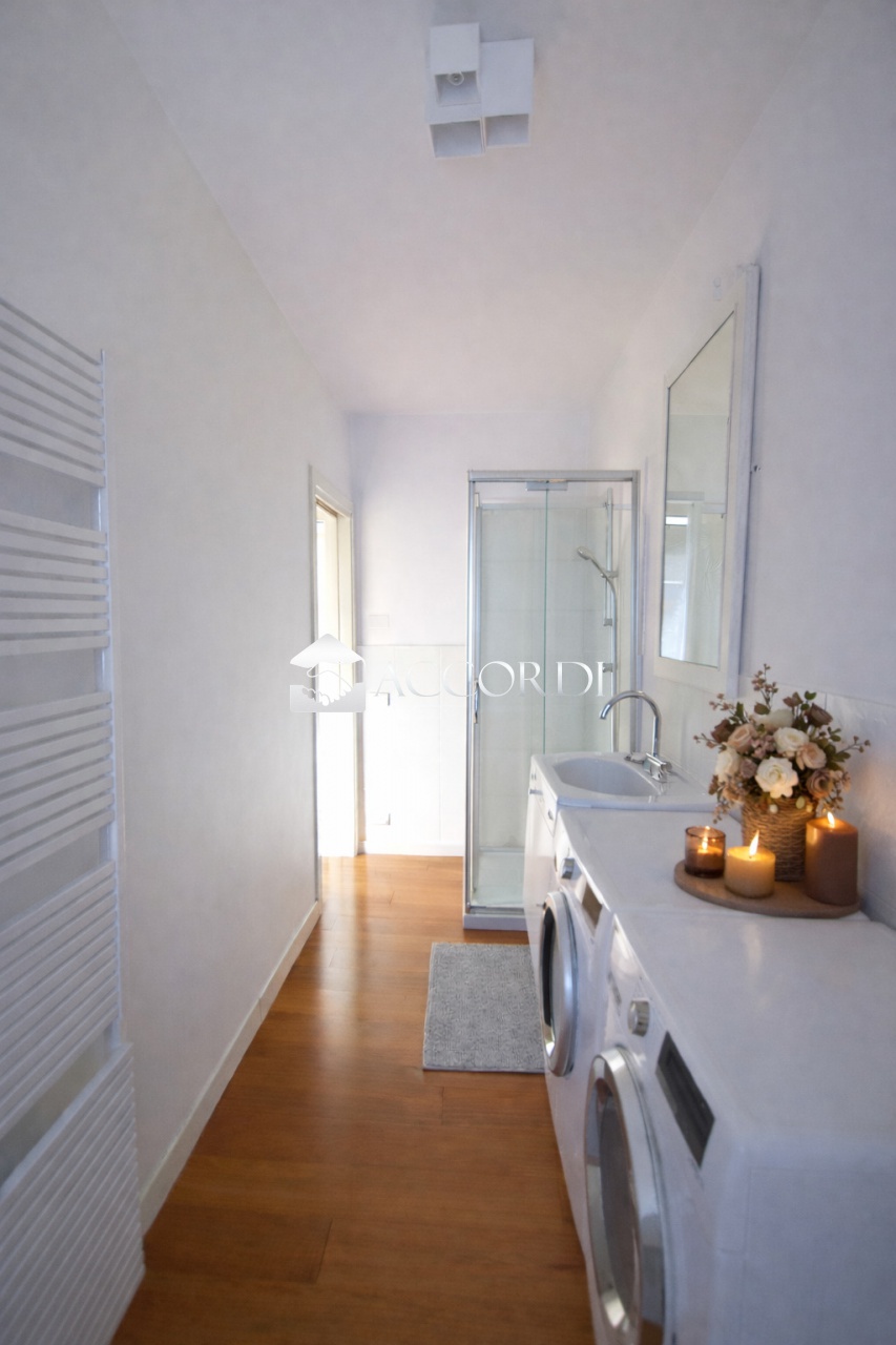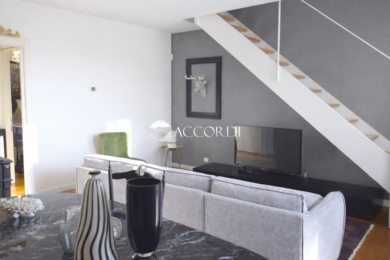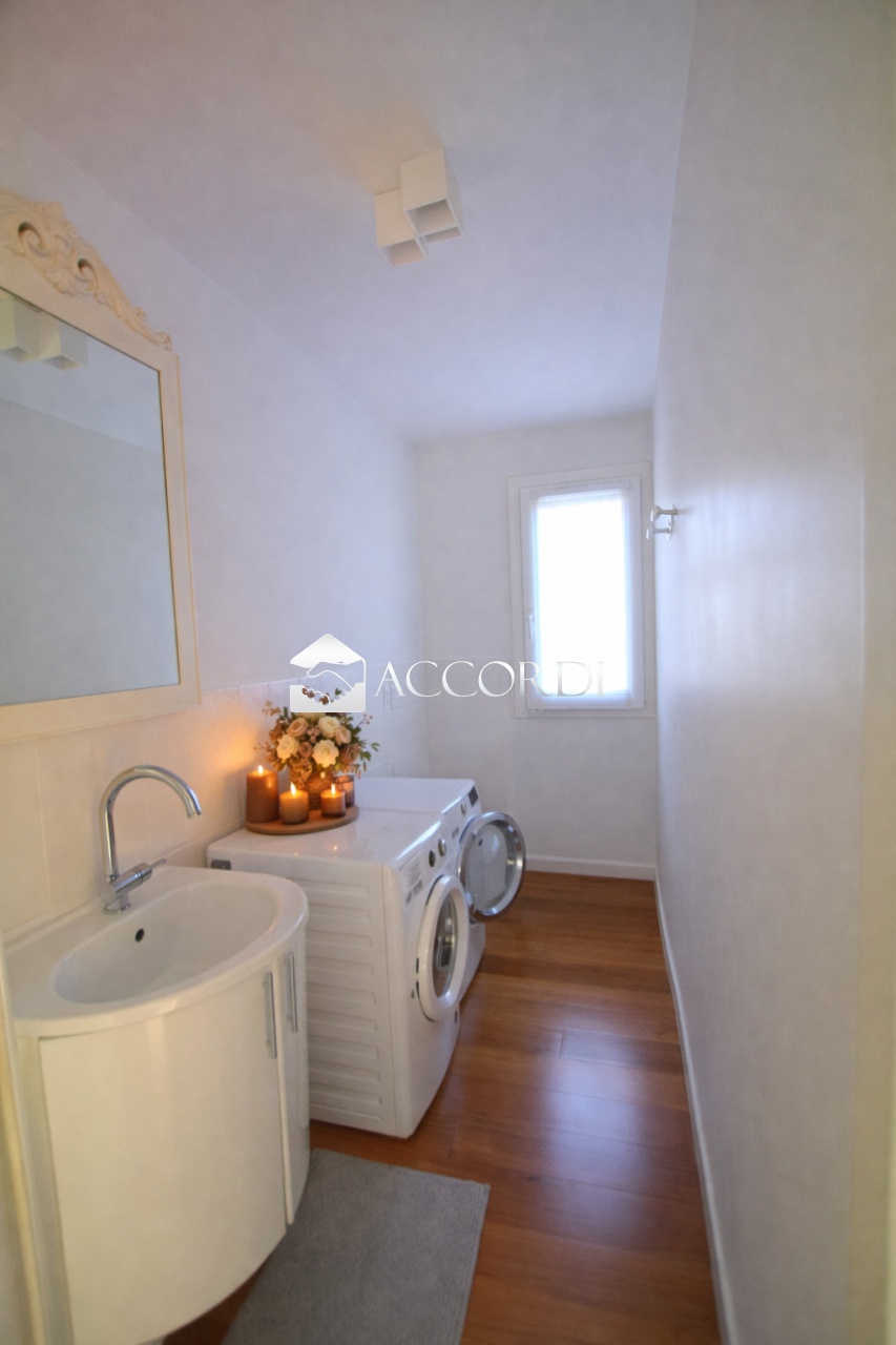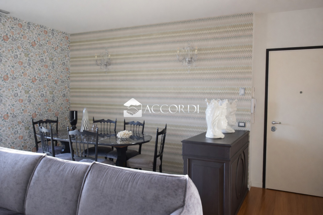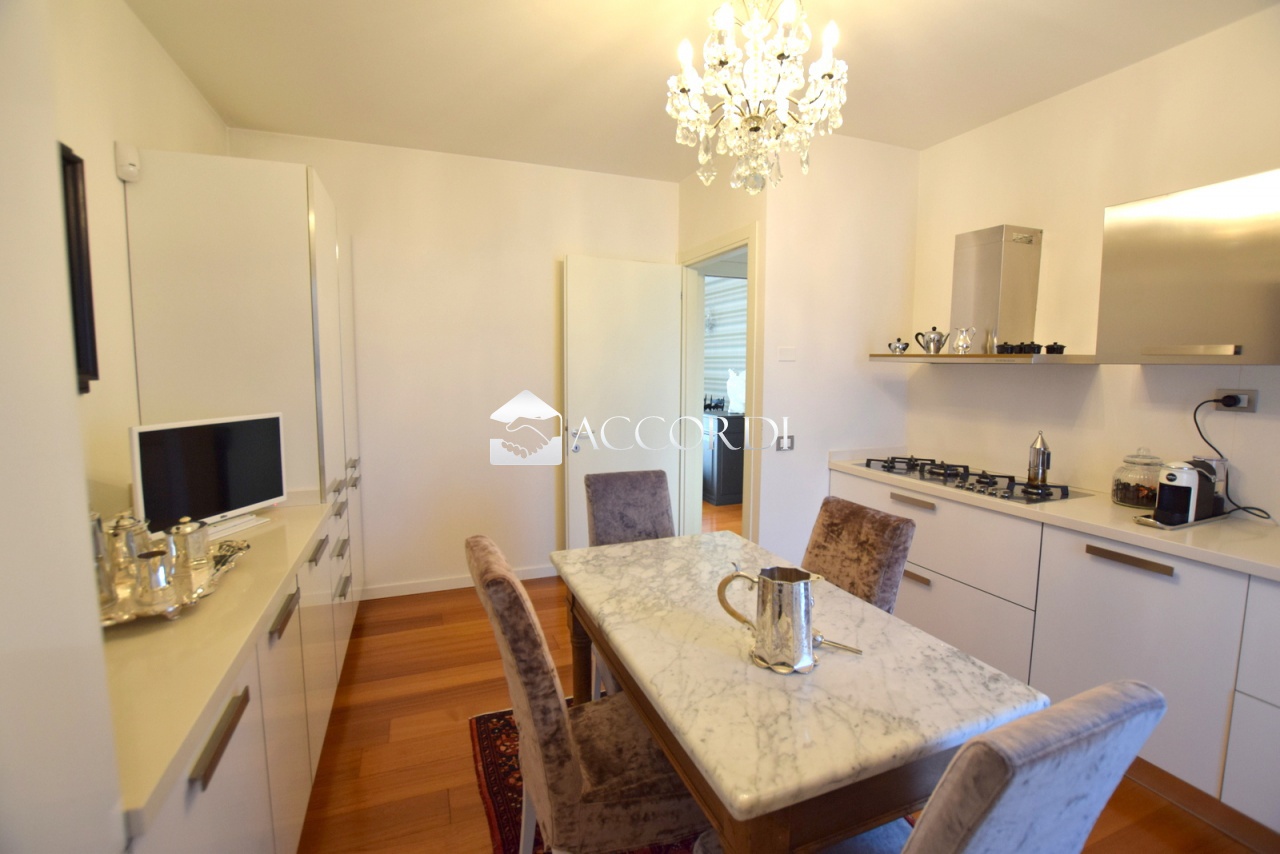 Dotazioni dell'appartamento (che rimangono): doppio split aria condizionata/inverter, impianto allarme perimetrale e volumetrico, videocitofono, pavimentazione in legno ovunque, zanzariere su tutte le finestre.