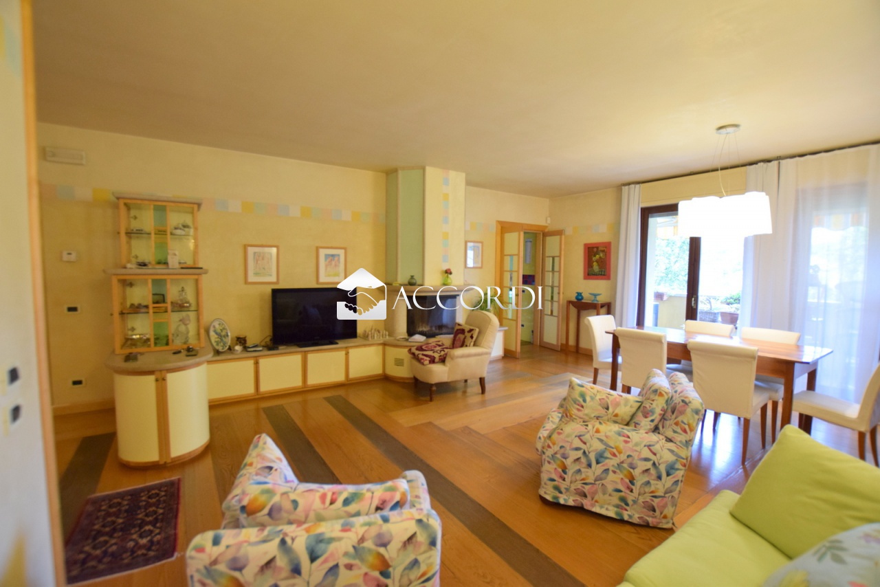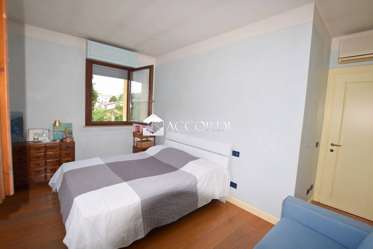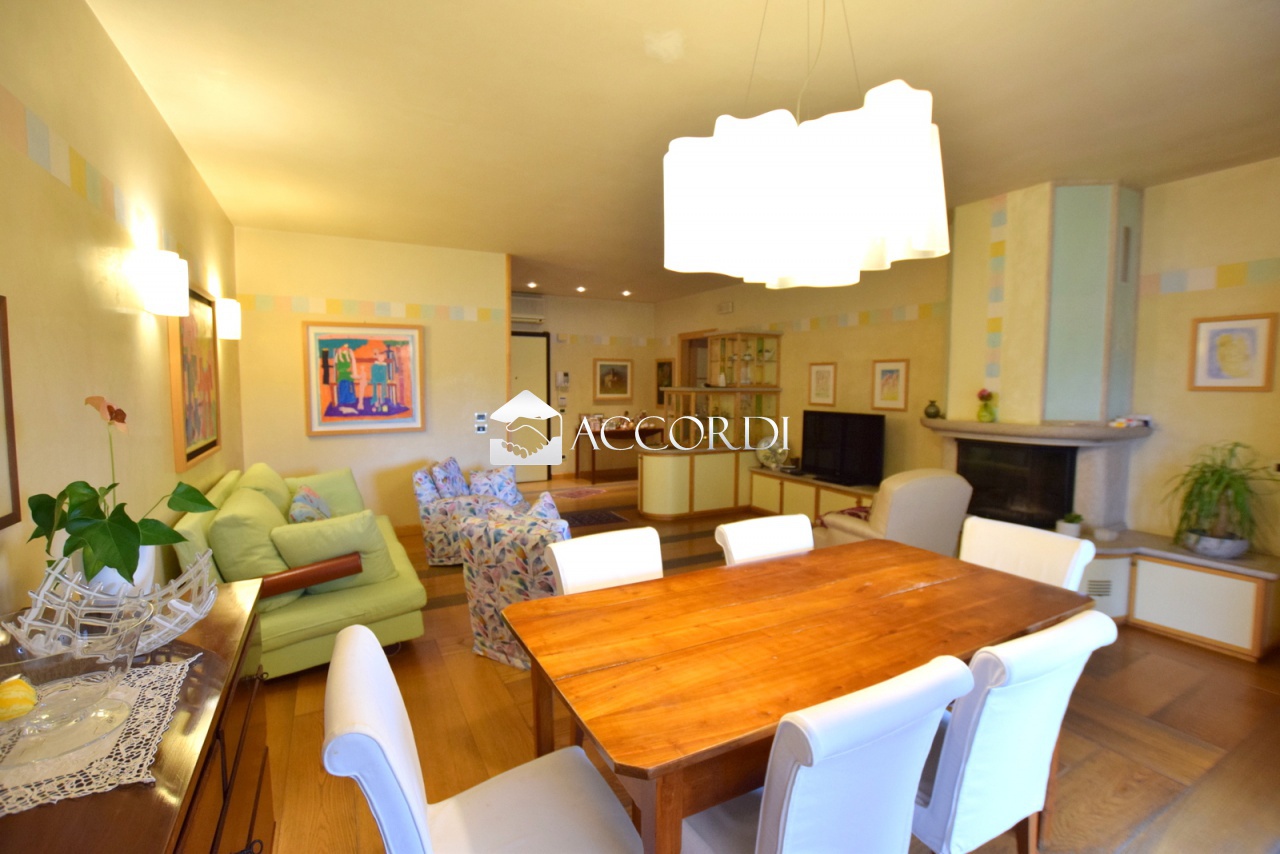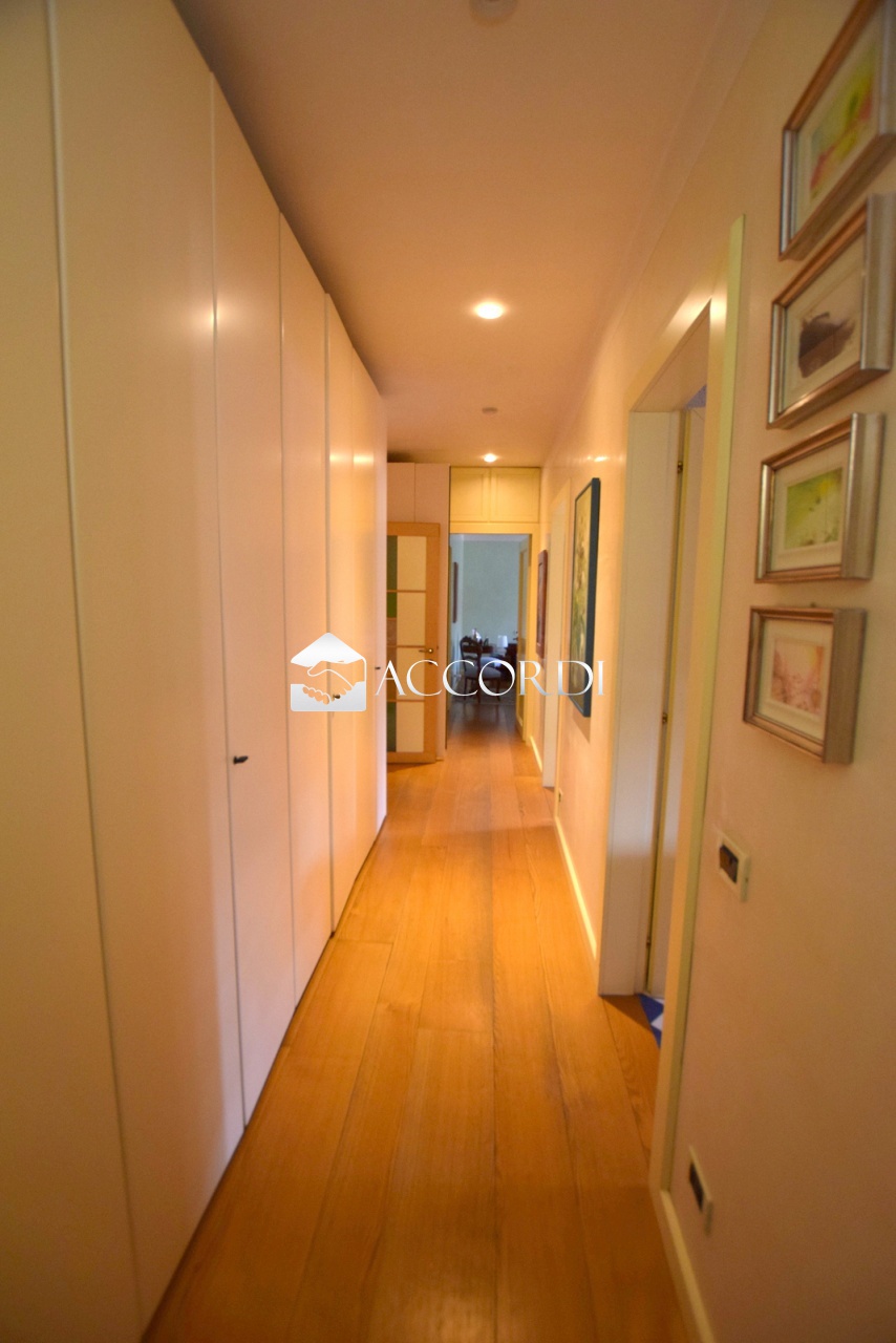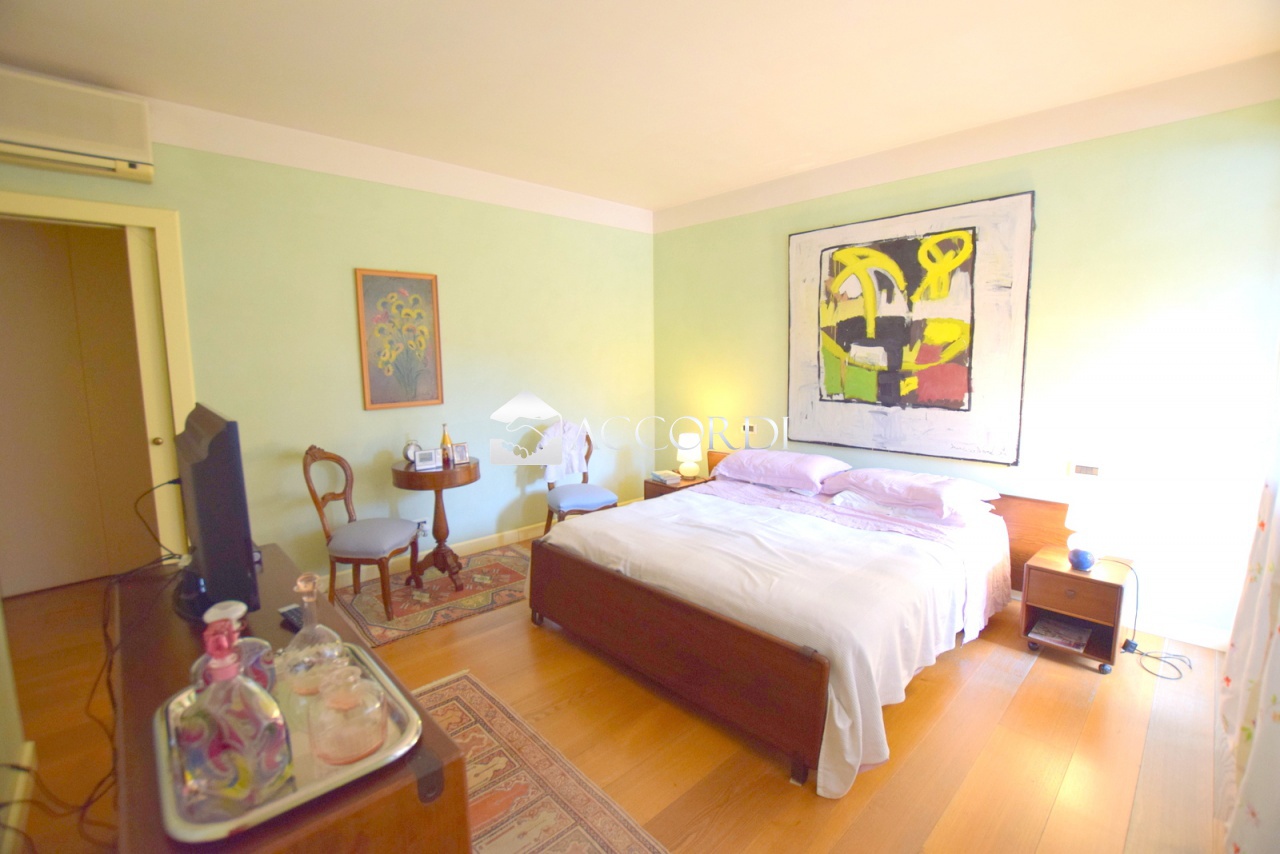 Il reparto notte offre : due camere matrimoniali di cui una con piccolo antibagno attrezzato a stanza armadi e bagno con doccia, una camera doppia, bagno principale con vasca/doccia idromassaggio, altro terrazzo di 22 mq. Nell'interrato garage di mq.27 ed un posto auto coperto.