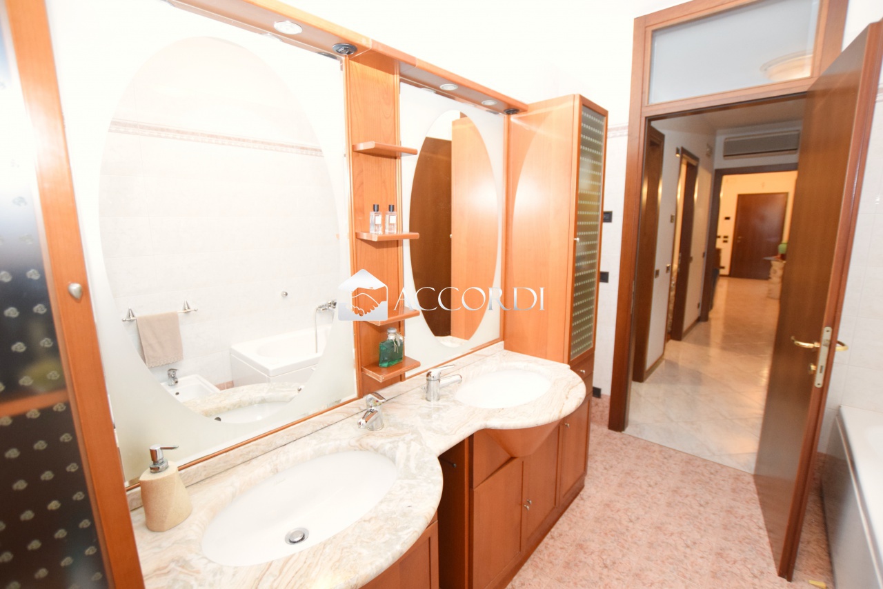 Completa la zona notte un secondo bagno, dotato di doppio lavandino e vasca idromassaggio.