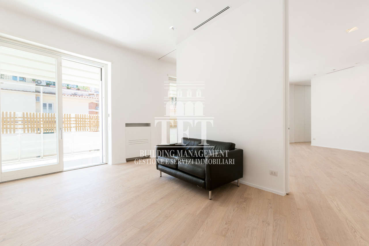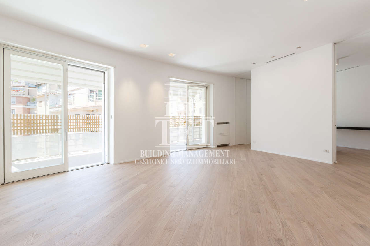 I dettagli fanno la differenza: parquet color miele, infissi scorrevoli dal design moderno, pareti chiare che amplificano la luce naturale e impianti di ultima generazione.