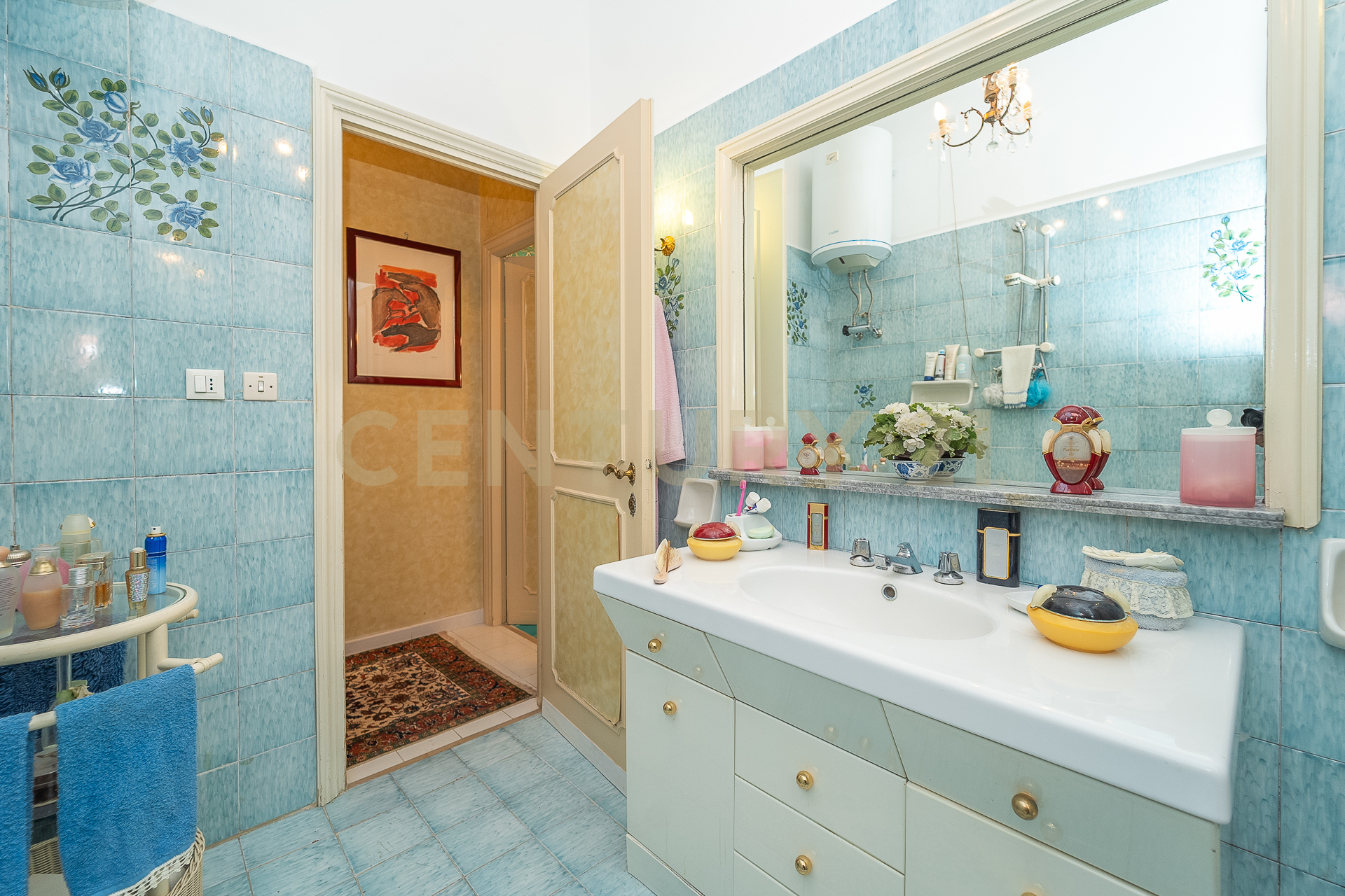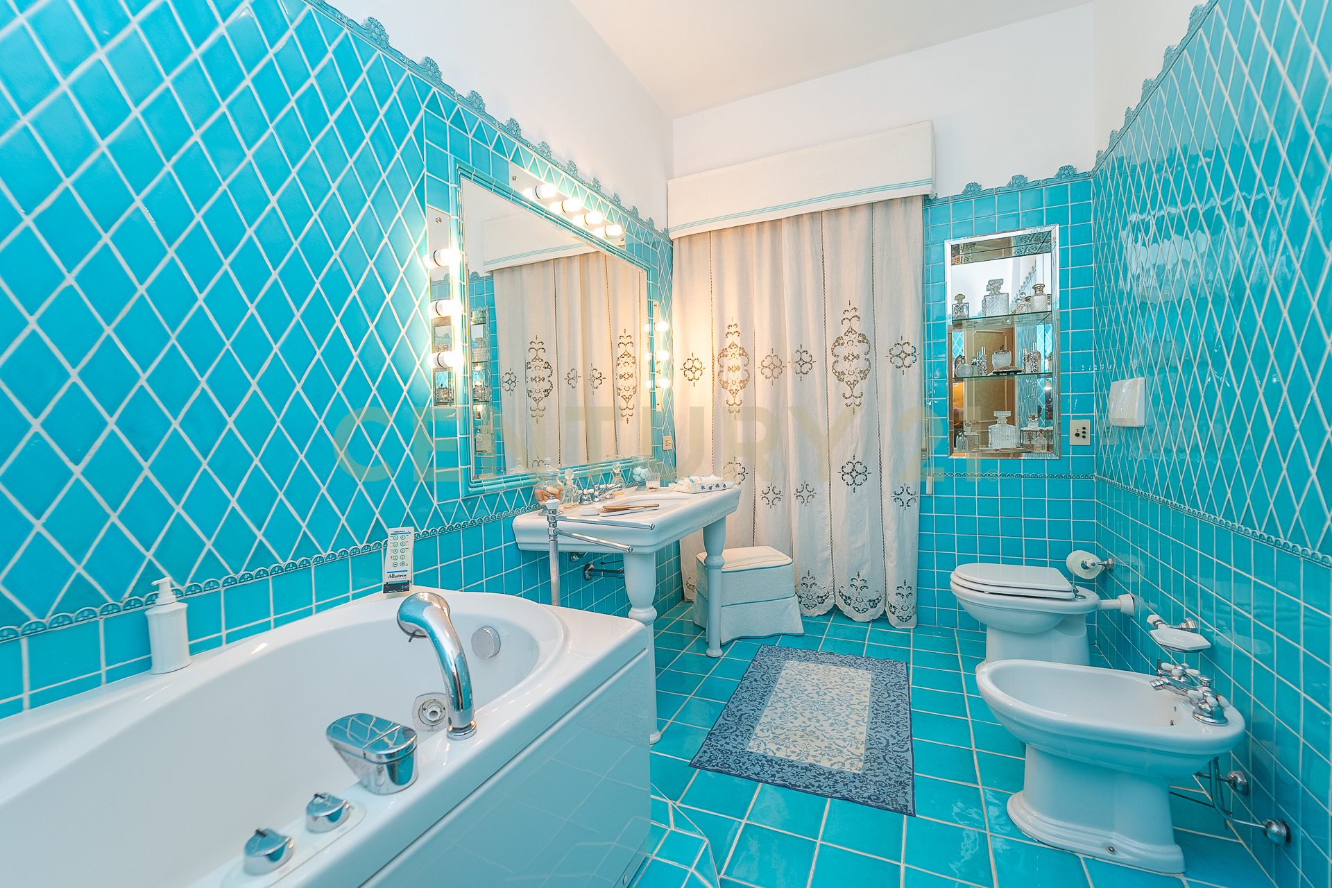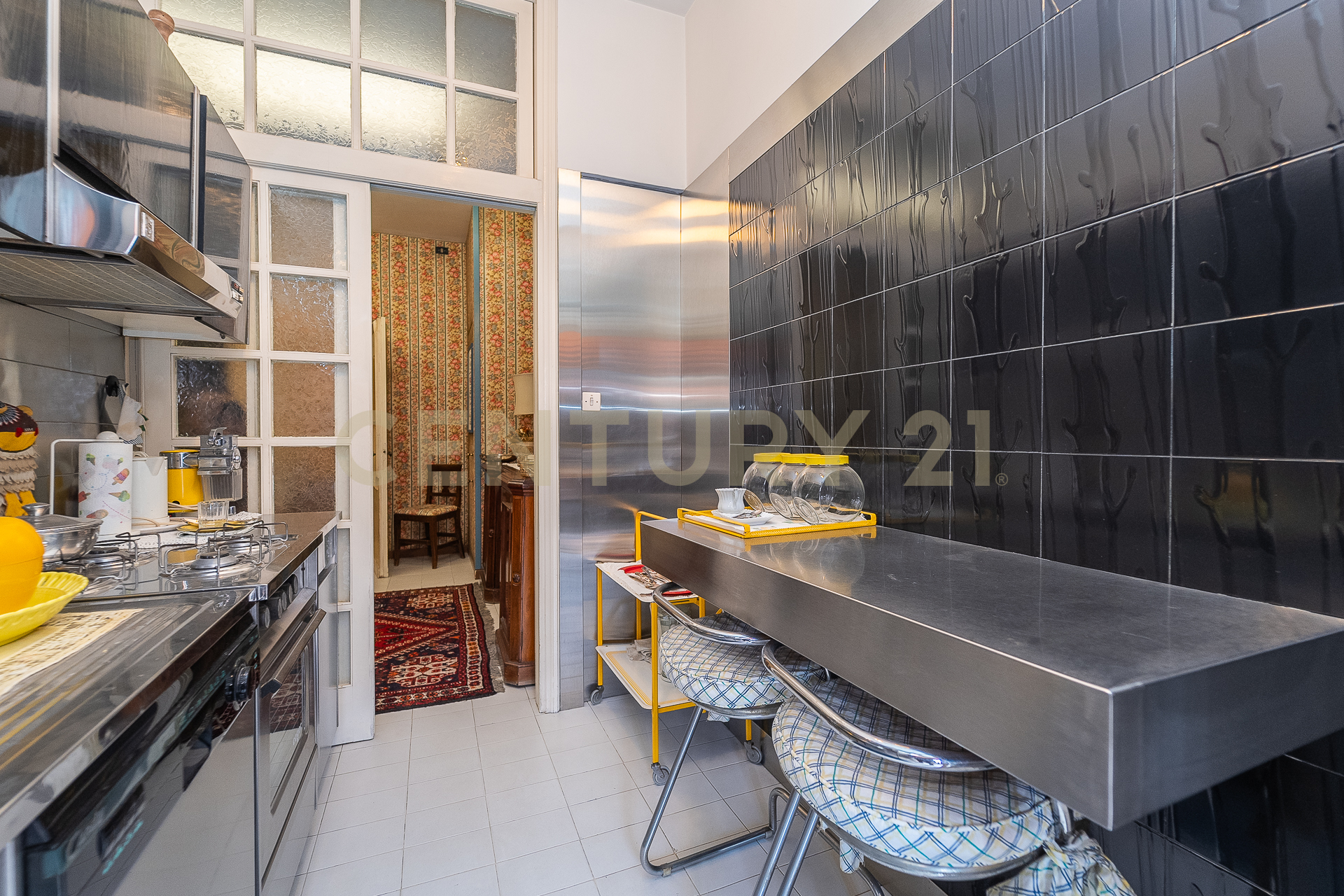 L'appartamento gode di una tripla esposizione ed ha una superficie di 400 mq così composta: - livello uno, ingresso con comodo guardaroba, un ampio doppio salone che rappresenta il luogo conviviale dell'abitazione con studio annesso, cucina abitabile, due camere matrimoniali, cameretta tre bagni di cui due en suite; - livello due, troviamo un ulteriore doppio salone con sala da pranzo, cucina semi abitabile con tinello, due camere matrimoniale e doppi servizi.