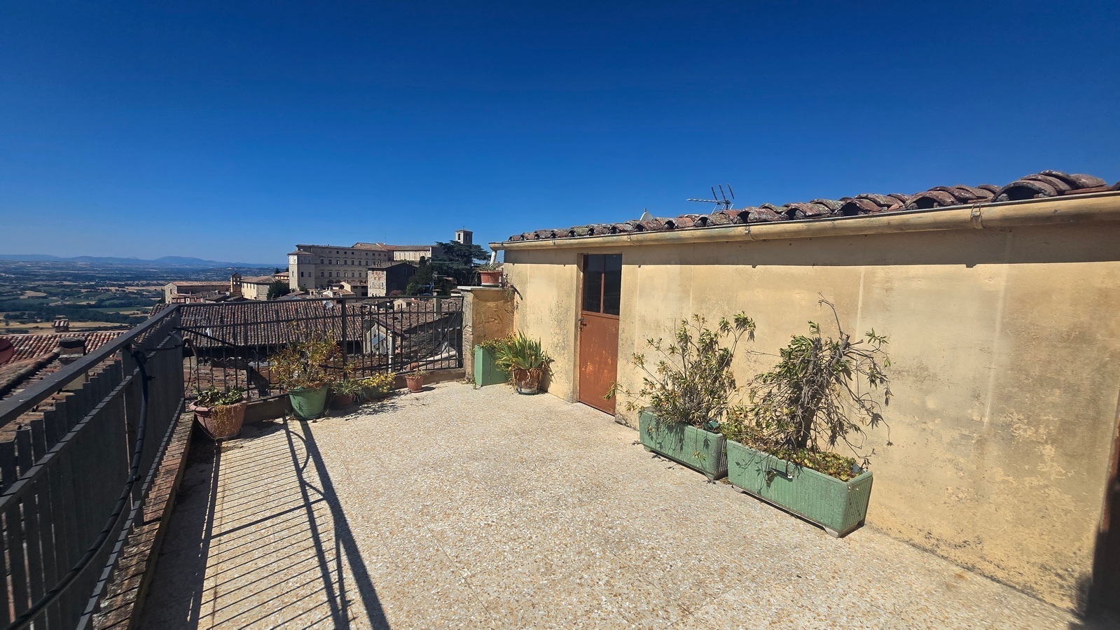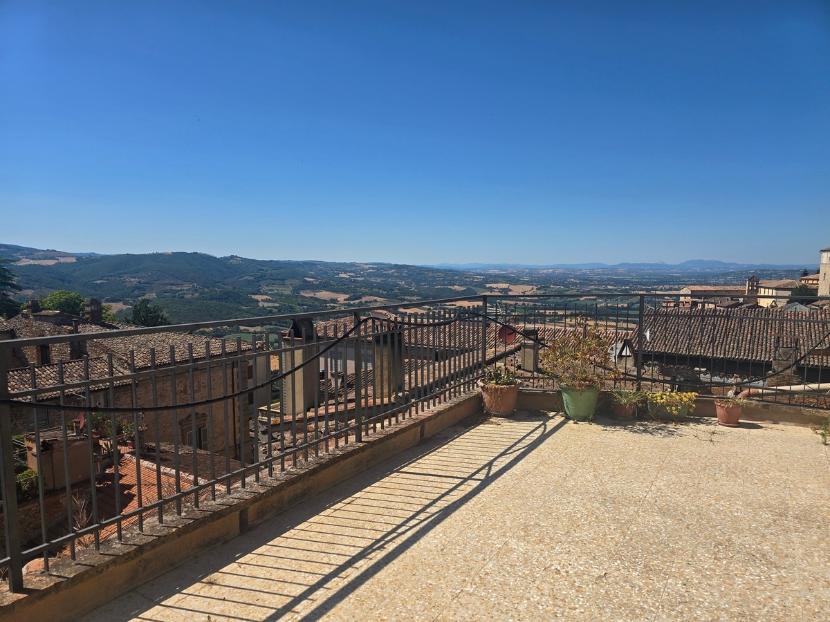 Panoramico L'immobile che vi presentiamo e' situato nel centro storico di Todi e consiste in due appartamenti (possibilità di unirli creare un'unica abitazione) con un balcone ed un'ampia terrazza super panoramica.