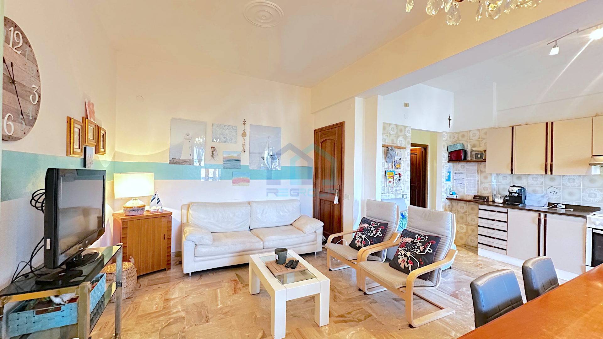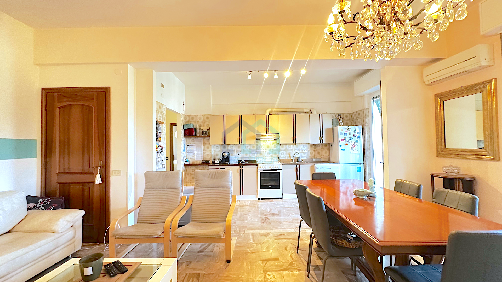L'alloggio è composto da :un ingresso, una zona living con angolo cottura/soggiorno e zona pranzo, tre camere da letto di cui una con accesso diretto al bagno, un bagno ed un pratico ripostiglio.