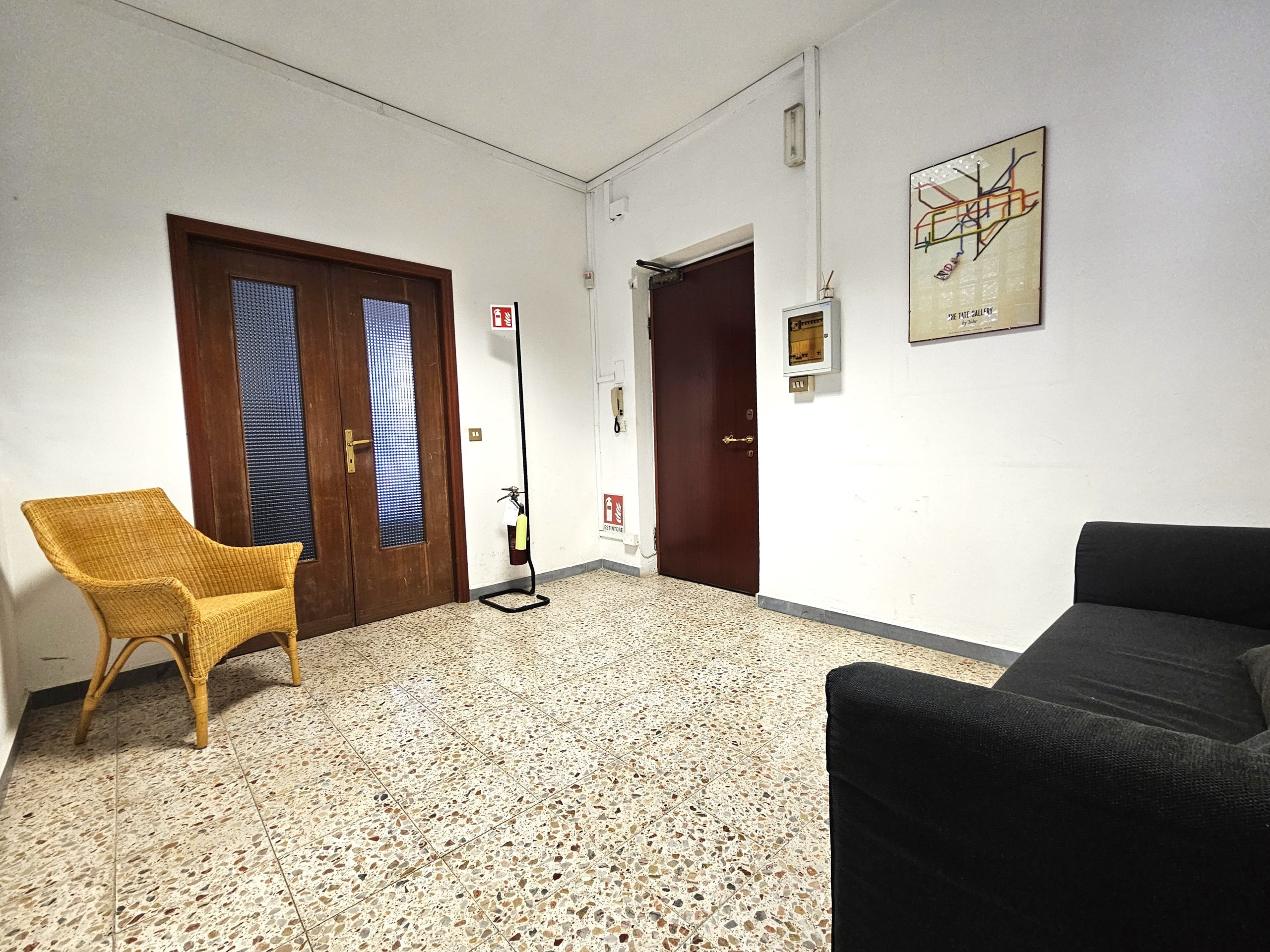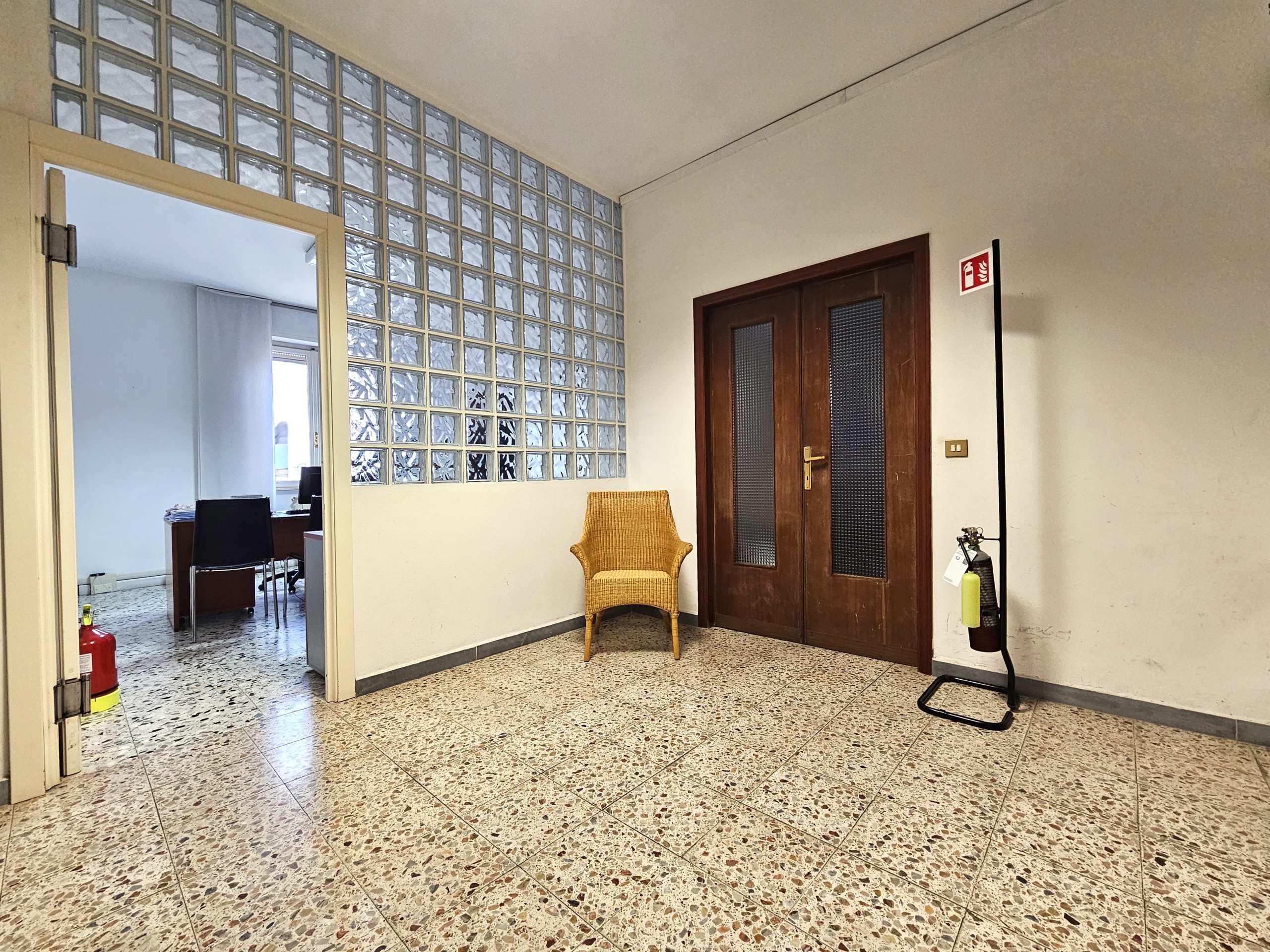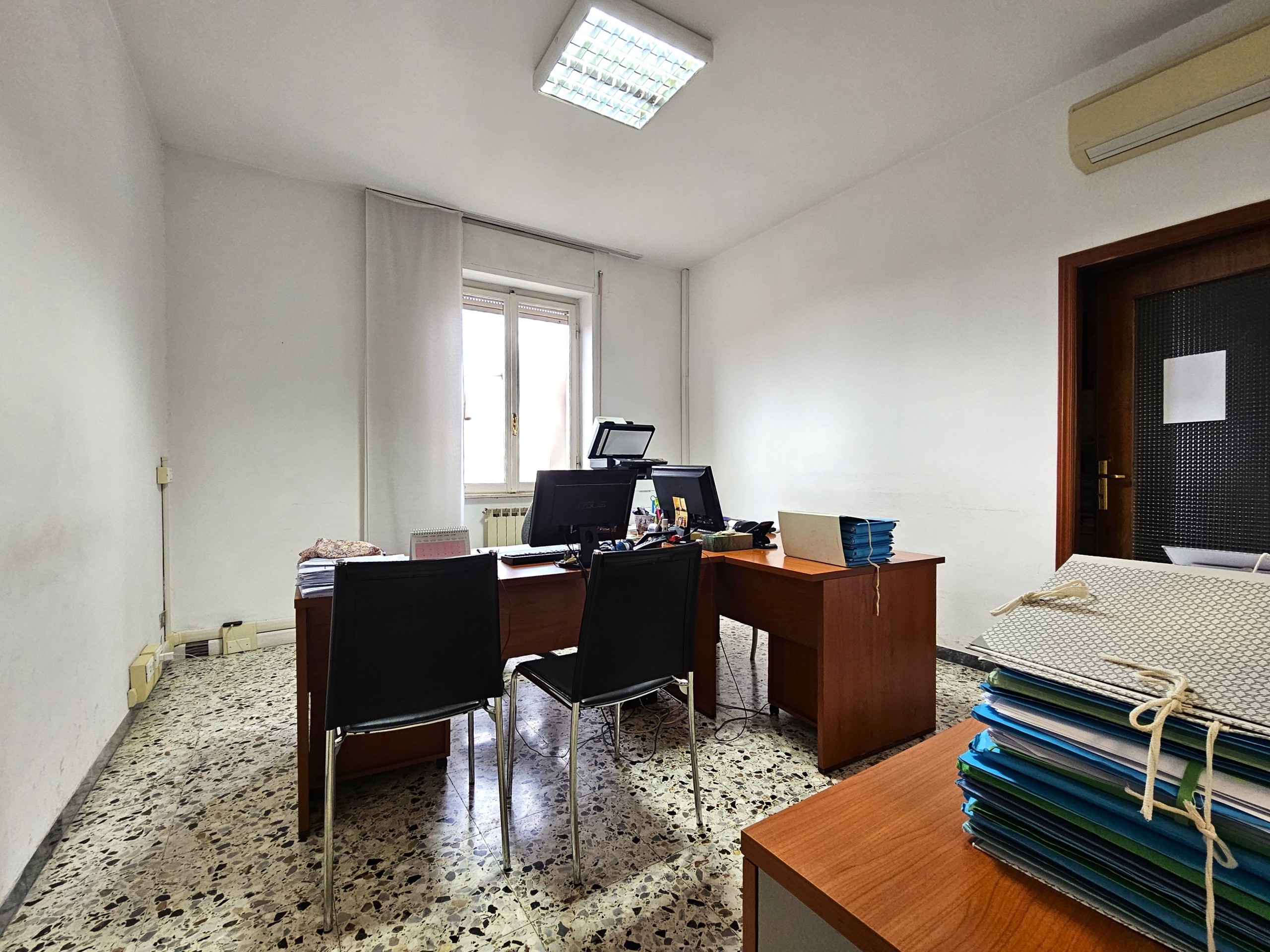 L'appartamento attualmente utilizzato come ufficio ma ad uso abitativo si compone di: ampio ingresso/disimpegno, salone doppio con terrazzino, cucinotto, quattro stanze di cui una con balcone, disimpegno e bagno finestrato con doccia.