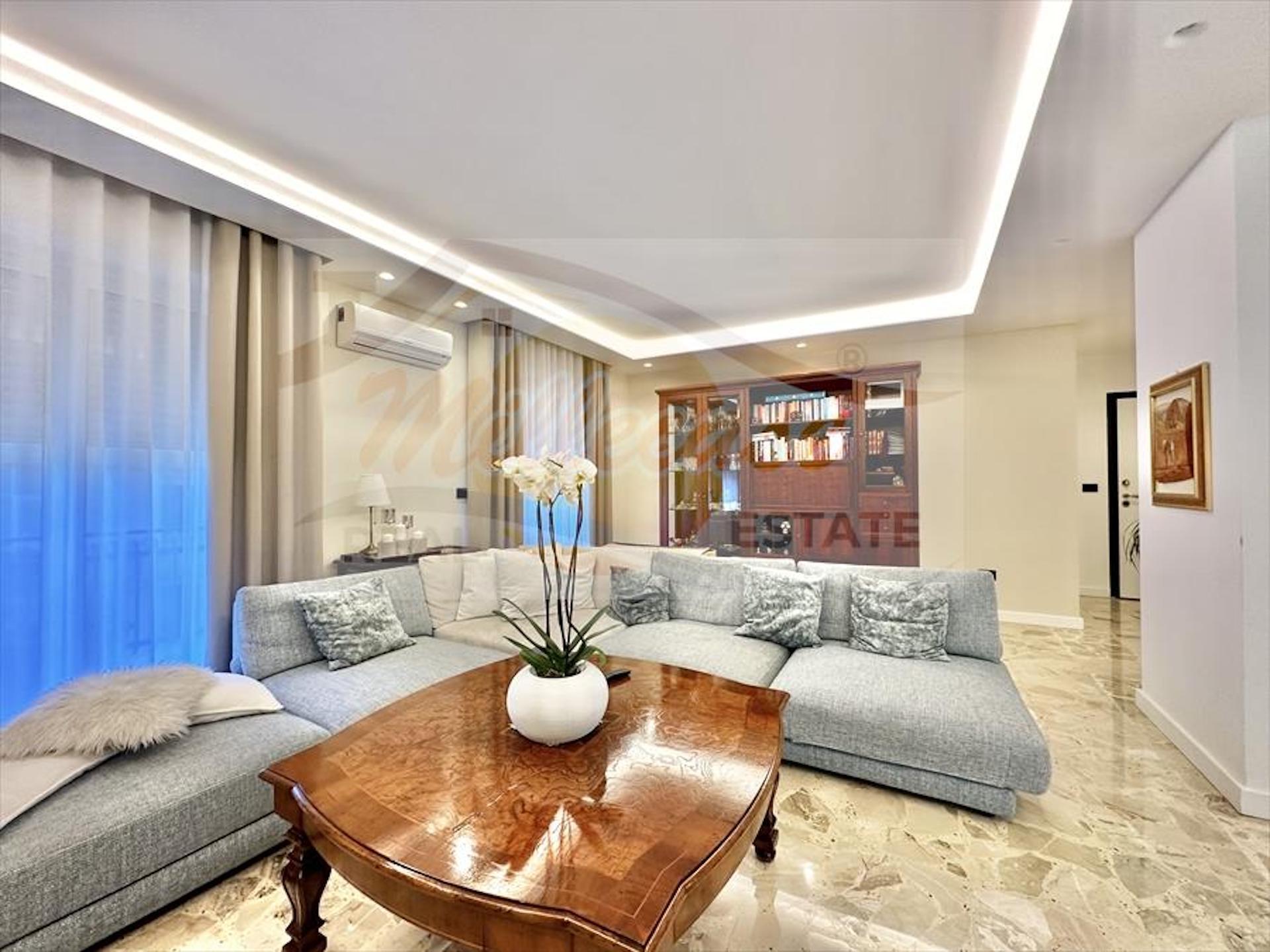 Appartamento posto al primo piano di 145 mq ***.*******.** circa, in condominio ascensorato con terrazzo a livello di circa 45 mq. L'immobile è composto accedendo da un'ampia zona living con salone doppio collegato alla cucina ampia ed abitabile con uscita diretta sul terrazzo a livello, Bagno principale, n. 3 camere da letto di cui una quella principale con bagno in camera, ripostiglio.