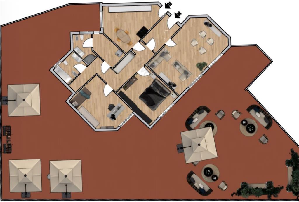 I due bagni e la stanza di servizio completano la funzionalità di questo appartamento, rendendolo adatto a famiglie o a chi cerca ampi spazi.