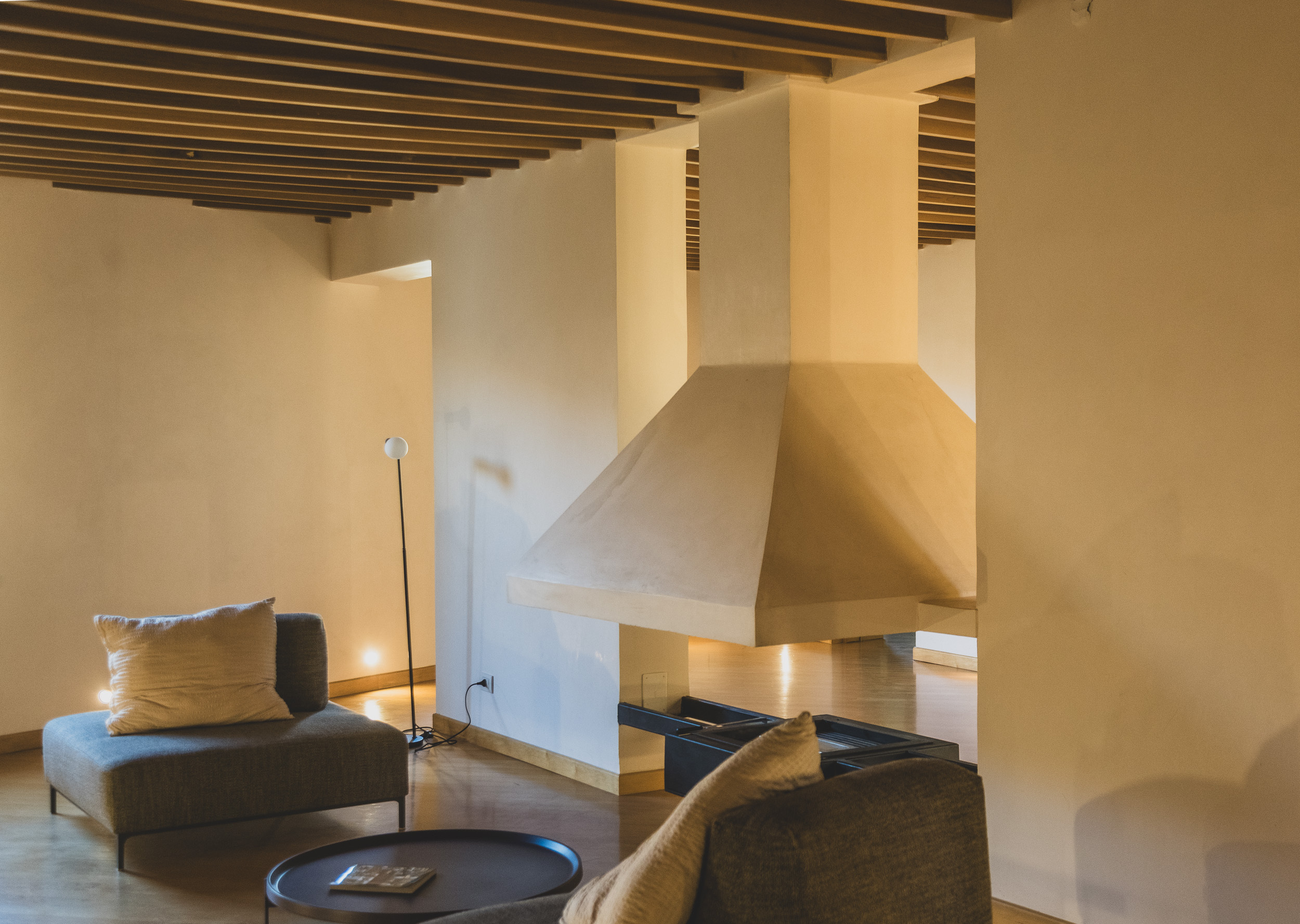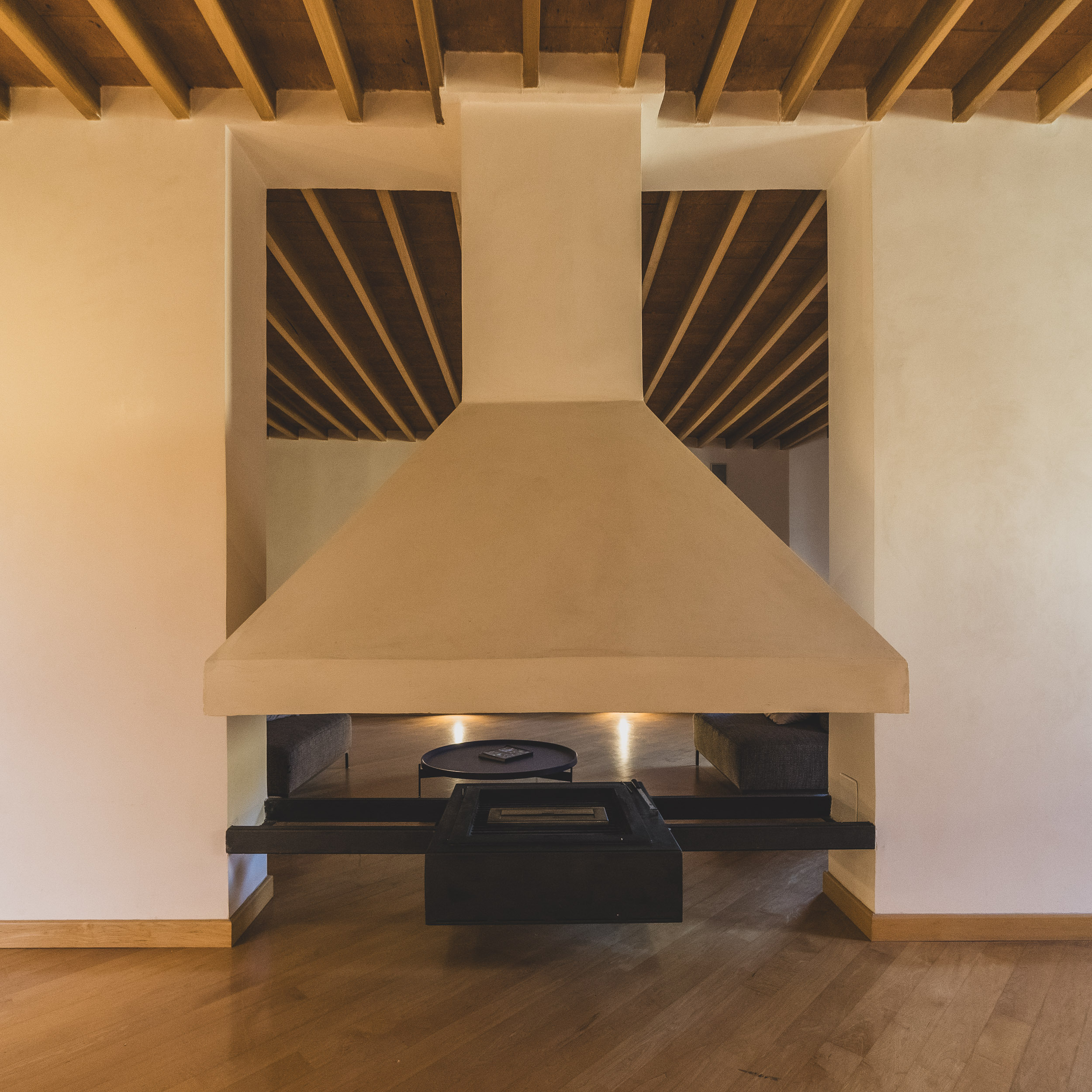 Un ampio salone accoglie lingresso, impreziosito da un camino centrale, protagonista dello spazio living, che conferisce carattere e calore allambiente.
