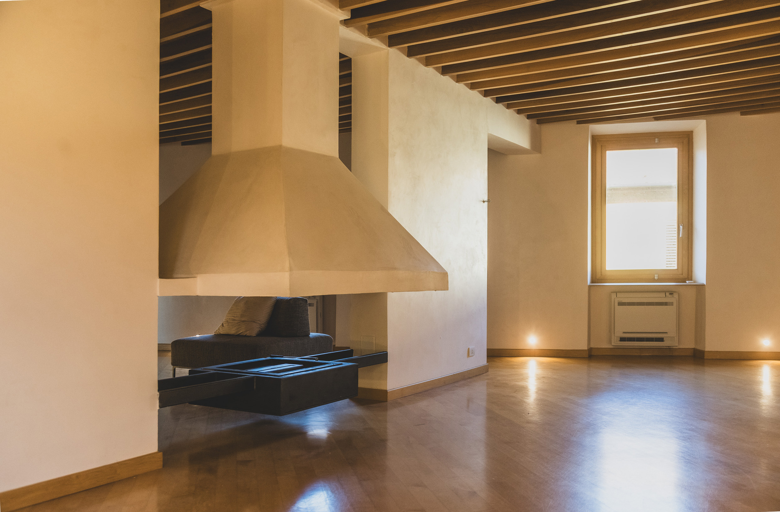 Lappartamento è dotato di impianti e finiture di alto livello: climatizzazione caldo/freddo in tutti gli ambienti, impianto elettrico completamente rinnovato, infissi in legno naturale completamente restaurati.