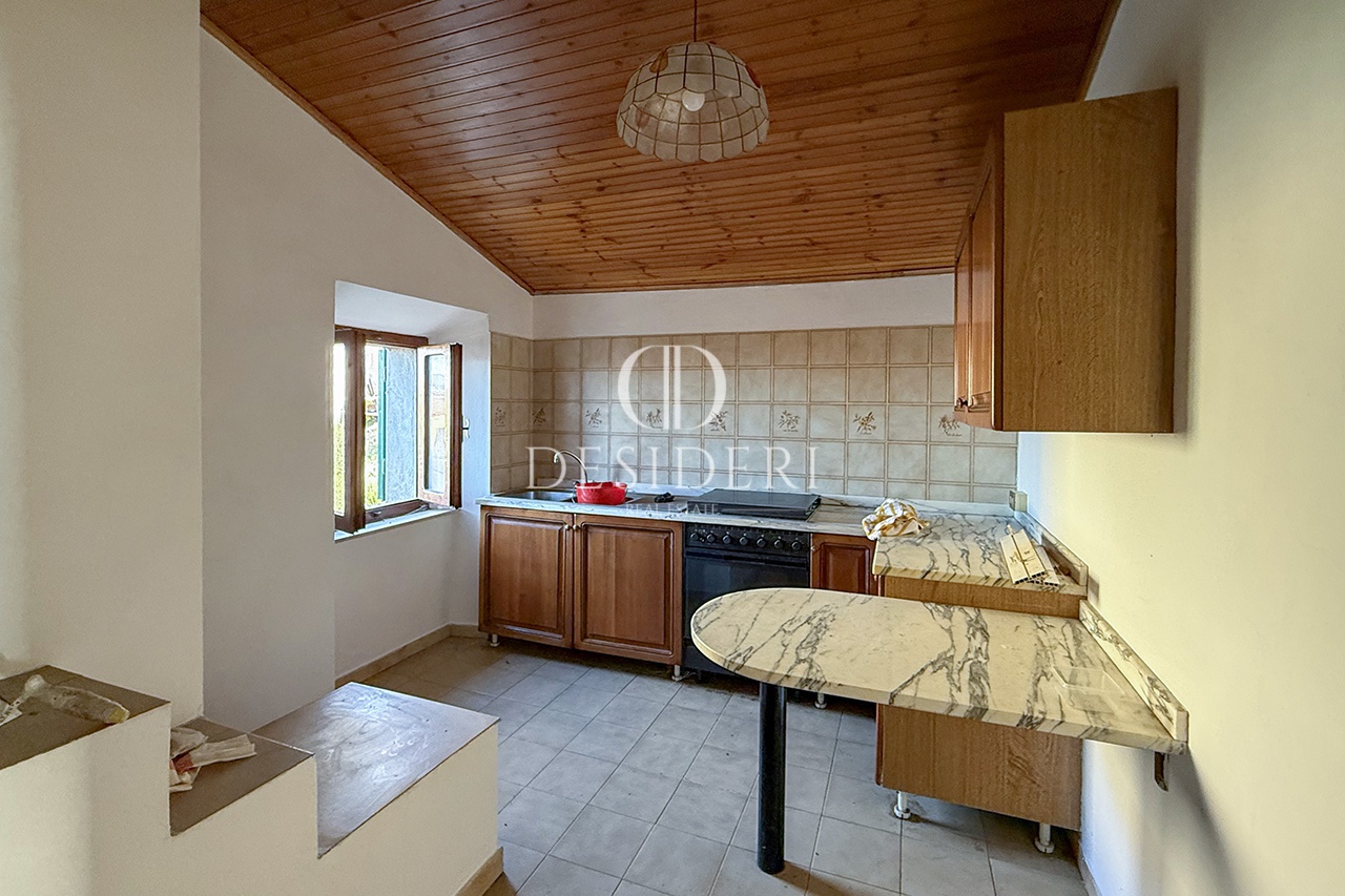 Salendo da scala interna troviamo altro locale sottotetto suddiviso in due vani con ingresso angolo cottura e bagno.