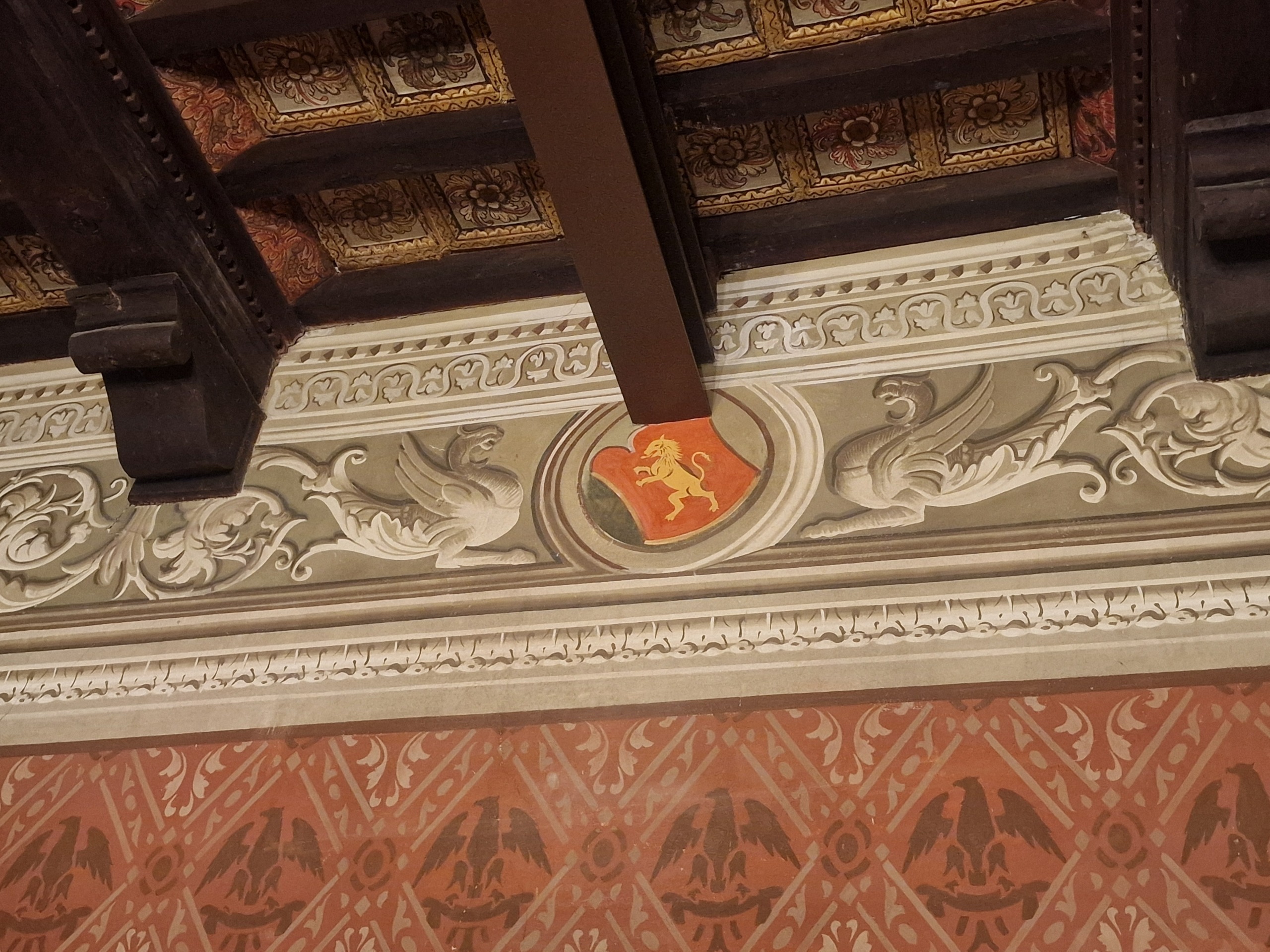 Gli appartamenti Il primo appartamento, di circa 150mq catastali , è composto da una sala da pranzo/ o di rappresentanza con soffitto ligneo intarsiato e dipinto, un salotto con soffitto ligneo intarsiato e dipinto e una camera matrimoniale , entrambi con accesso su un balcone con vista sulla piazza, una cucina, un bagno e un ripostiglio.