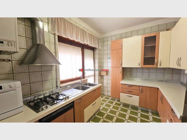 Ben distinta, la zona pranzo ospita una cucina abitabile e una sala da pranzo separata, entrambe con accesso a un secondo balcone.
