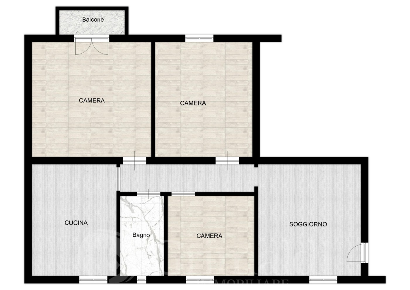 L'immobile, posto al terzo piano, composto da: ingresso in sala, 3 camere, cucina abitabile, bagno e balcone.