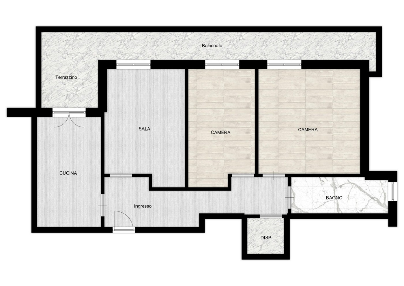L'immobile, posto al terzo piano, composto da: ingresso, soggiorno, 2 camere, cucina abitabile, bagno, dispensa.