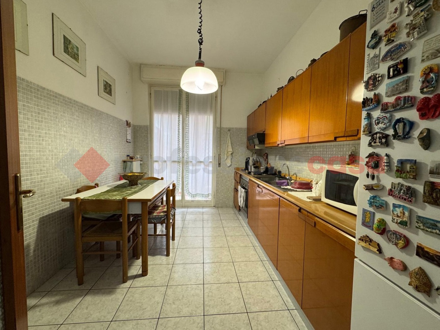 La cucina abitabile dotata di uscita sulla comoda veranda, attualmente adibita a zona lavanderia.