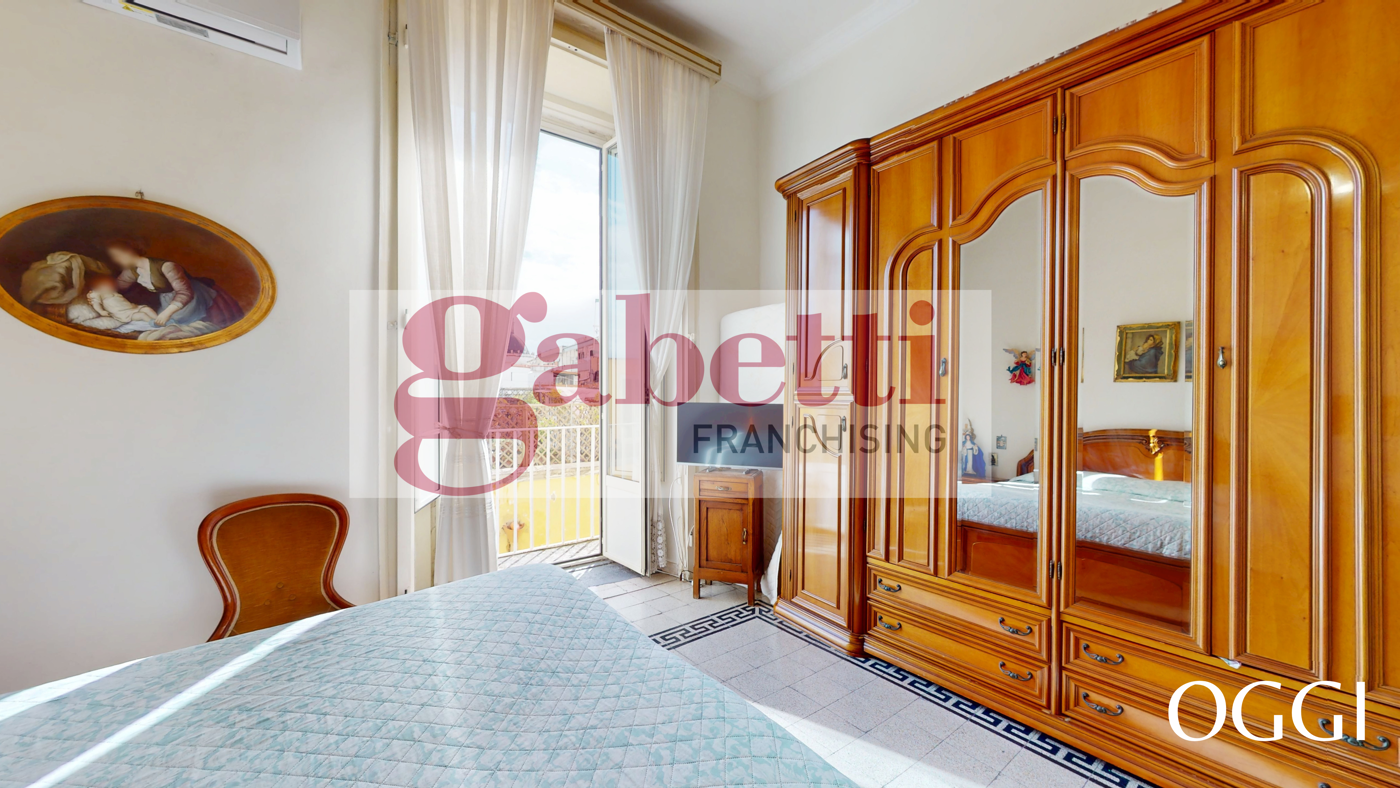 La zona notte comprende camere regolari e ben dimensionate, tra cui una matrimoniale con accesso al balcone, luminosa e riservata.