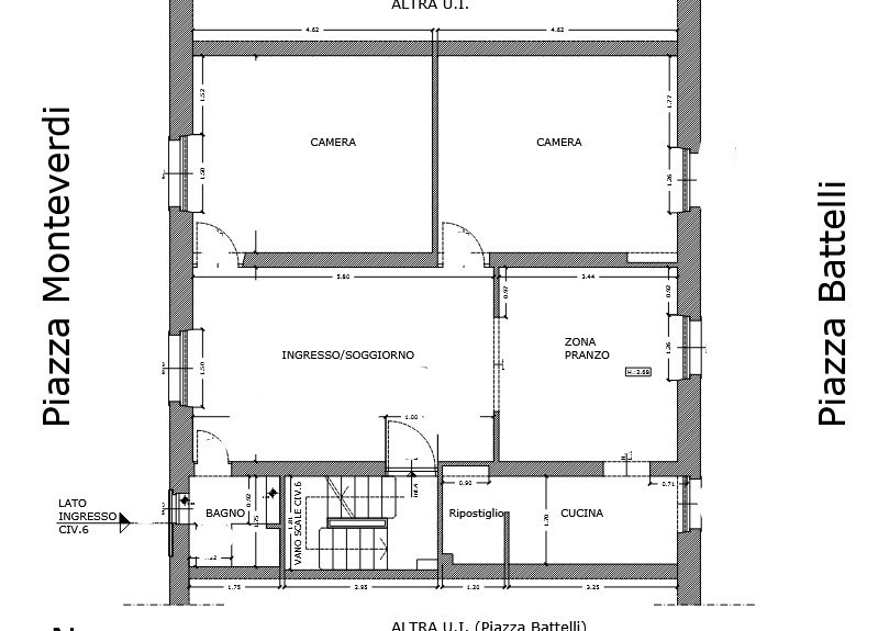 PIENA PROPRIETÀ DELLIMMOBILE SITO IN GENOVA, PIAZZA CLAUDIO MONTEVERDI 6/4, Limmobile si compone di un ampio ingresso/soggiorno collegato ad un vano ad uso zona pranzo, cucinino con ripostiglio, bagno e due camere da letto.