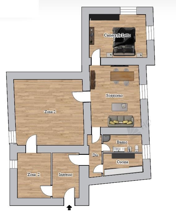 Le foto mostrano virtualmente l’immobile vuoto, senza arredi per privacy.
