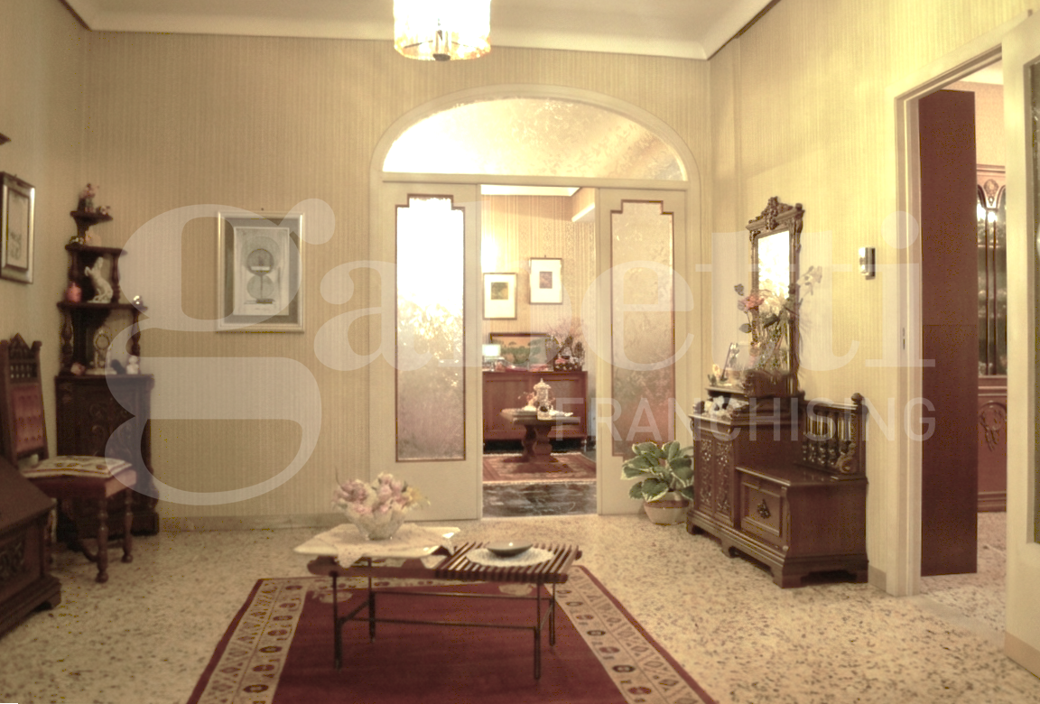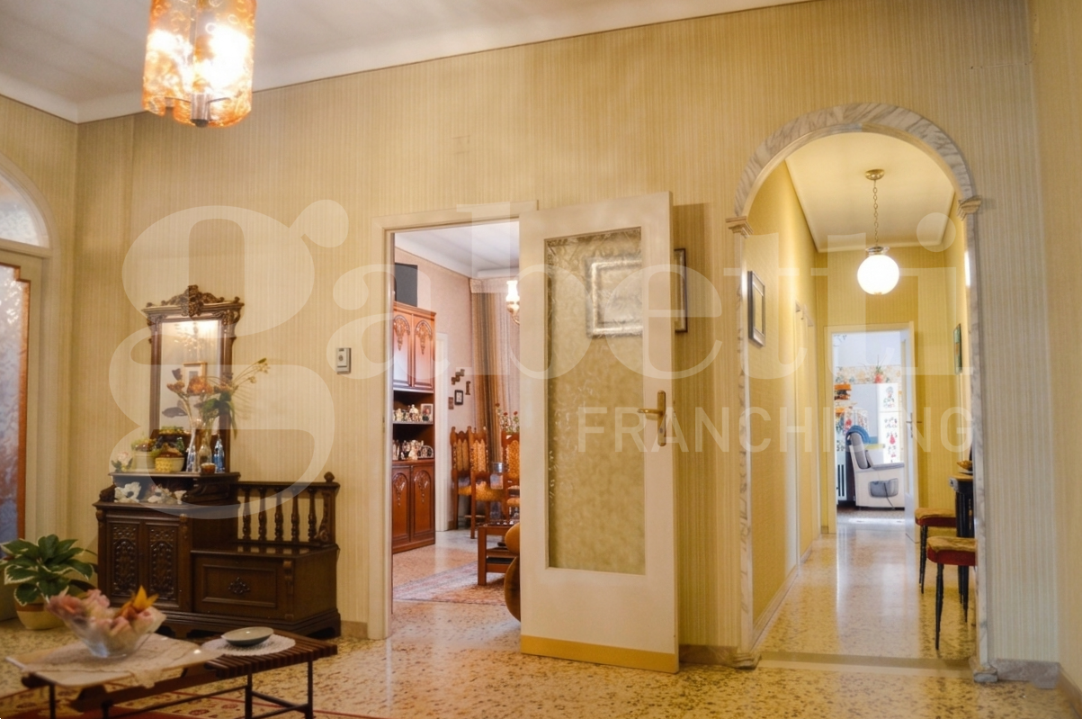 La propriet, che si estende su una superficie di circa 200 mq, accoglie i visitatori con un imponente ingresso che funge da baricentro per l'intera abitazione, suggerendo sin da subito la possibilit di una futura suddivisione in due unit distinte.